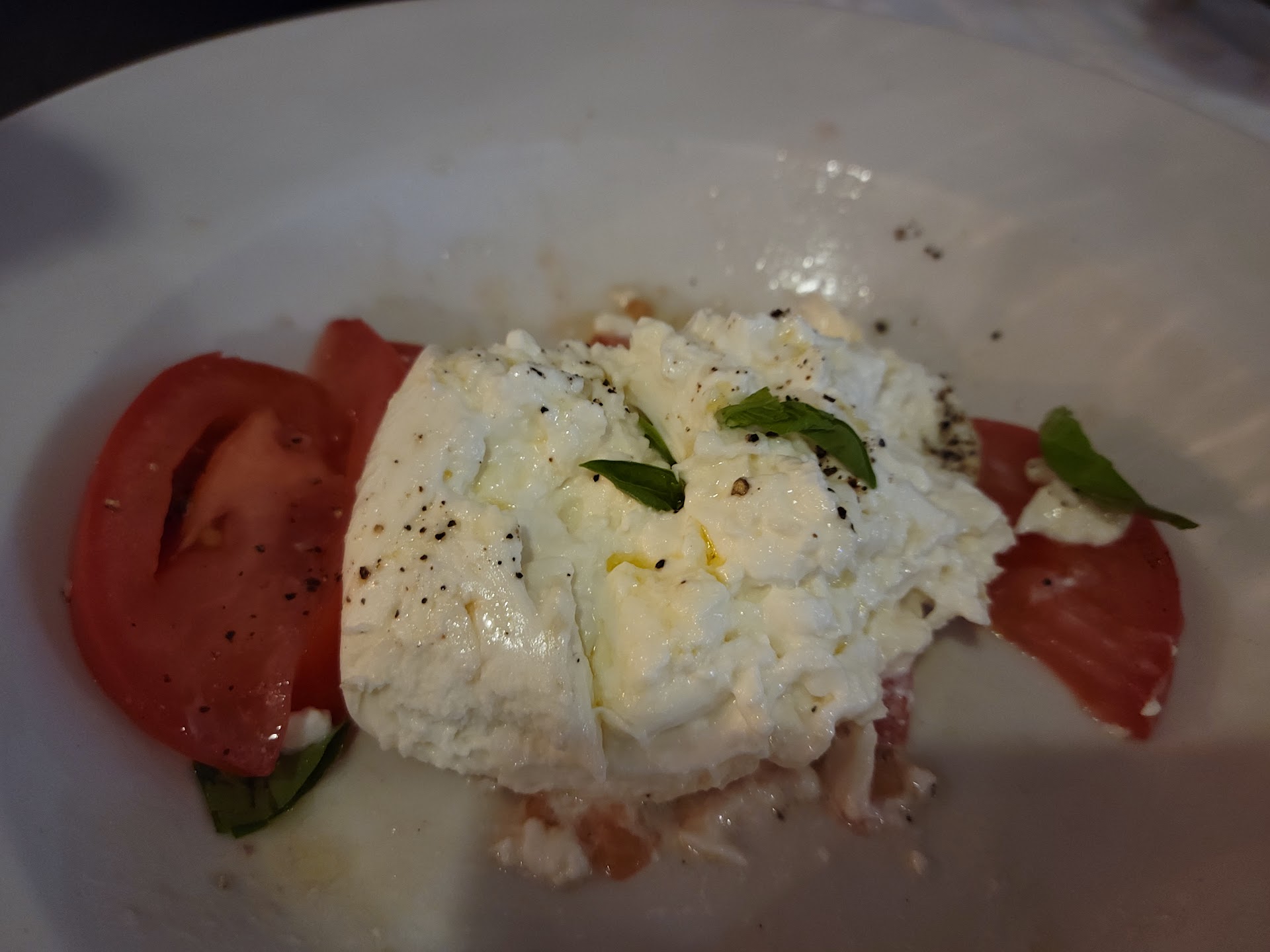 When we walked in, I was pleasantly surprised to find that the restaurant was nice and clean. The lighting was a little dim (that is a good thing) and the ambiance was just right. My wife, who is a clean freak, loved the place already. I cautioned her that we shouldn't get too excited just yet as we hadn't tried the food yet. We were seated promptly and we ordered soft drinks, a "Caprese" and an order of their "home style bread" (see pic).
