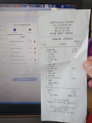 Wanted to try them since their move, as I've been coming to this place since I was a child. Food was edible according to most, besides my boss, who really struggled with his steak torta that for some reason came with butter and melted American cheese? Wouldn't order the chilaquiles again, but I've had their tacos and Chile rellenos before and was happy with them at the prior location. Anyway, we referenced their menu online when ordering. The warning that online ordering is not enabled is very faint, so didn't notice until the end. Regardless, this is their official offering of a menu on Jaliscocafeca.com that links from their Google business page, and the prices are not up to date. The actual bill when they rang me up was a full 50% higher! The lady didn't seem to care, and assuming she's a regular employee, I don't blame her... as she probably deals with a litany of such complaints all the time. I didn't want to make the business' problem her problem, as she seemed very busy, but given how outrageous the situation was, I was definitely tempted. At that point I just wanted my food and to get out of there. That's just plain false advertising though, and they need to either update the prices or remove them from their website entirely. No wonder there was no mention of the total when I placed the order over the phone. What a ripoff. Extra star for the nostalgia, but it seems like their kitchen, their website... Basically...