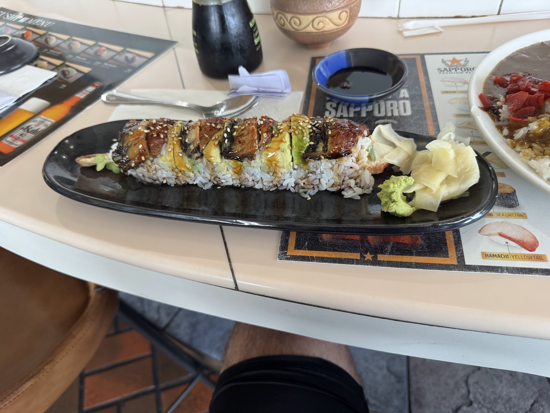 Two rolls I got. after ramen and champon. What a joke. It almost feels dishonest for them to serve these portions. Finger sized rolls 6 pieces for $15 each. I wouldn’t bother ordering anything from the chef’s special menu off of handwritten A4 paper menu sheet.