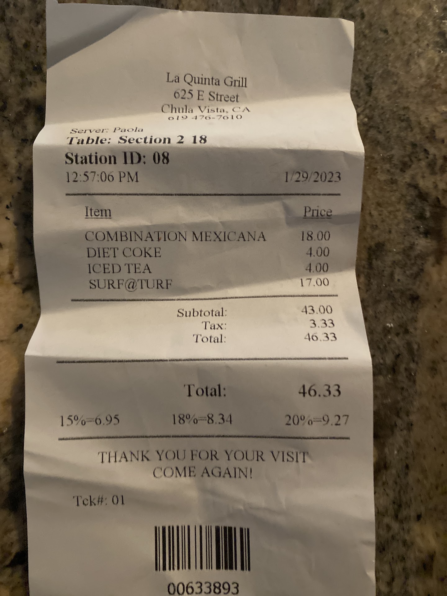 I recently visited La Quinta Grill in Chula Vista on a Saturday afternoon, and while the food was absolutely delicious, the service could use some improvement.