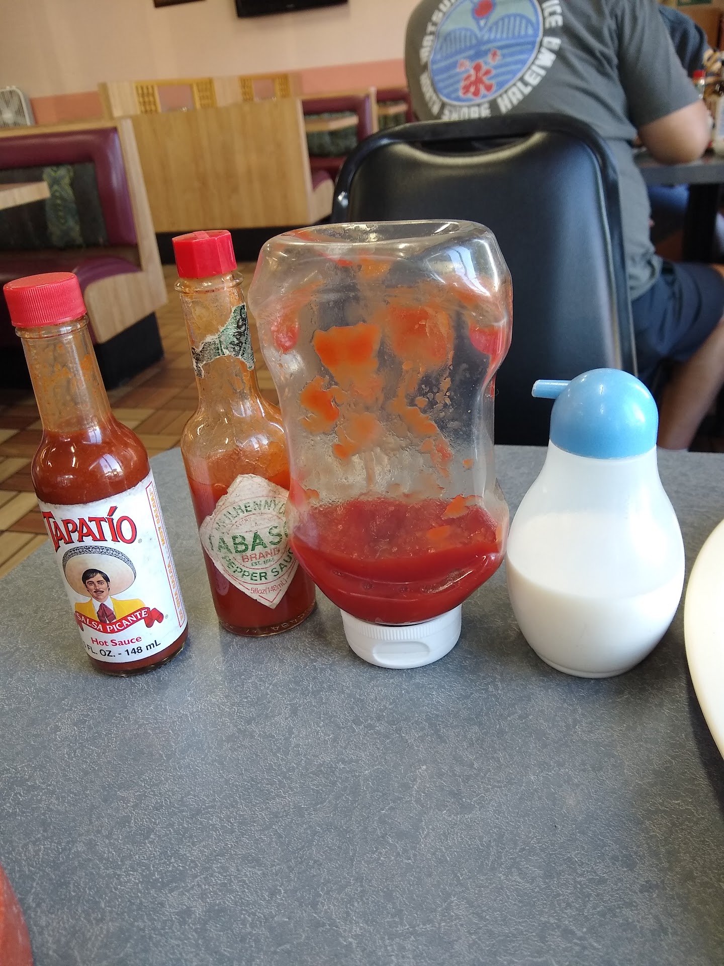 I am walking out of Manna's as I write this review. WOW!!! I ordered breakfast (pancakes,omelets and so on.)The cashier asked me if I needed any extra condiments and I replied yes, I would like 2 extra syrups.She replied I put 4 syrup's in your bag already.I replied thank you ,I would like 2 more please,She replied you only have 3 pancakes 4 syrups is enough .I replied I love syrup and I will pay for 2 more if that's the policy here.The cashier then reached and pulled out 2 syrups and put 1 in my bag.I once again said that I would pay for the extra one in her hand .she replied you don't have to. My bill was $17.82.She looked at me and said that will be $18.00..she could have charged me the extra .18 cents from the beginning...I have been a patriot here for over 10 yrs.but this will be...