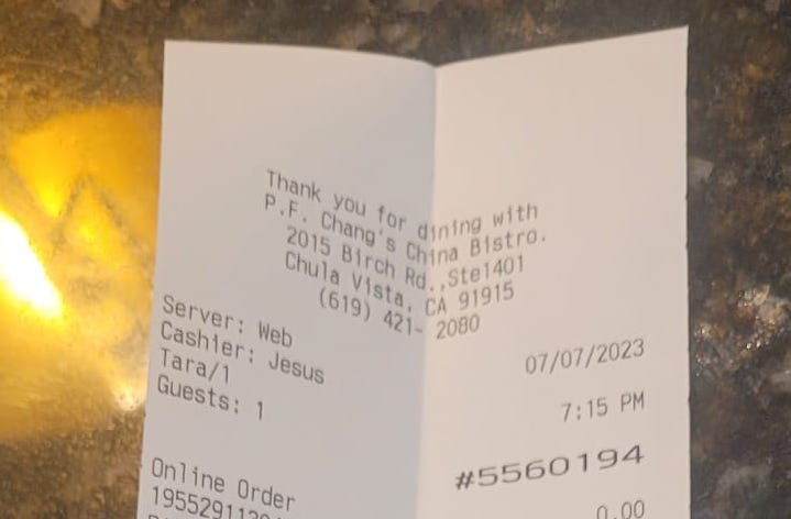 To future patrons of PF Changs Eastlake, expect excellent food, especially the gluten-free options. And if, by some unfortunate twist of fate, you find yourself caught in unforeseen events, take solace in knowing that Jesus, the remarkable manager, will be there to save the...