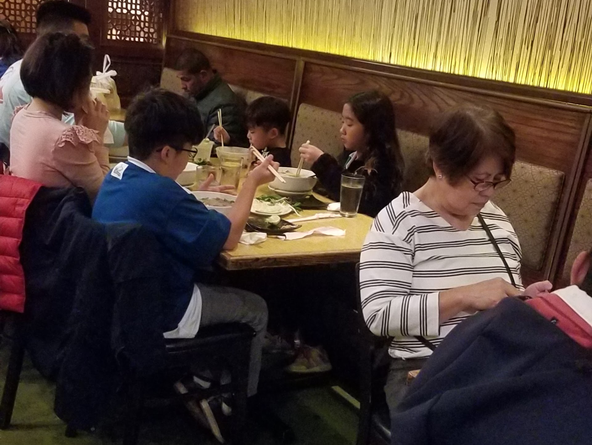 If I could give zero stars I would. My father and I came here for lunch after his radiation treatment, he was craving pho so we picked this place because it was close to home. When we got there the place was not packed at all, there were max 5 tables occupied, we sat down and immediately our order was taken, which not bad in my opinion but that's as good as it got. We then were reseated for an unknown reason by the waiter and waited over 30 minutes for our food that never arrived. During this time three more tables were filled and their food brought to them within 10 minutes. We asked the waiter when our food would get to us and his response was you ordered already? We ended up walking out because of the poor service. I understand if orders get forgotten or delayed but to just flat out ignore your customers sitting in the middle of everyone and not ask how they are or if they had ordered yet for over 30 minutes is just wrong and speaks a lot about the care they put into their business. What else do they ignore or forget about I wonder? We will not be coming here again, nor recommend this place to anyone. In fact if you are looking for somewhere to eat I recommend the Mandarin restaurant right next door, 5+...