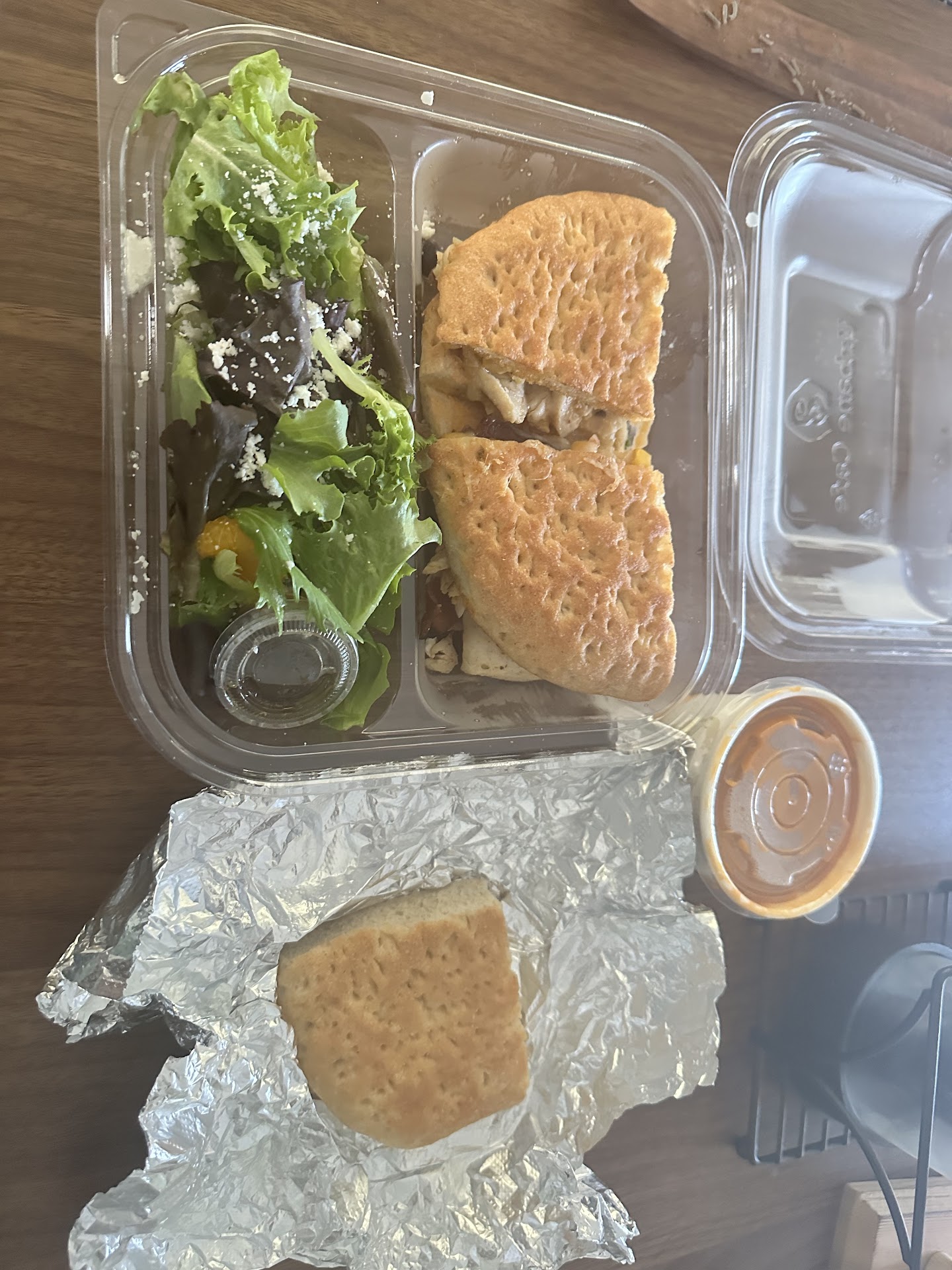Tonight, we had the UC Bank Mi bbq chicken and Salmon salad. Washed it down with Strawberry Agua Fresca. The Banh Mi had a similar flavoring to the original Vietnamese Banh Mi, just not as thick and tight. My wife enjoyed her Salmon salad. 12-15-24 I love the grilled Salmon Salad. The Chipotle Ranch Dressing goes really well with this healthy salad. The gentleman who helped us saved us from the faulty self-serve order kiosk. 1-15-25 Awesome service. Warm greeting. Thanked scoop! Super friendly and hospitable. We had the salmon bowl, Italian Wedding Soup with salad and bread. Food was terrific! 6-26-25