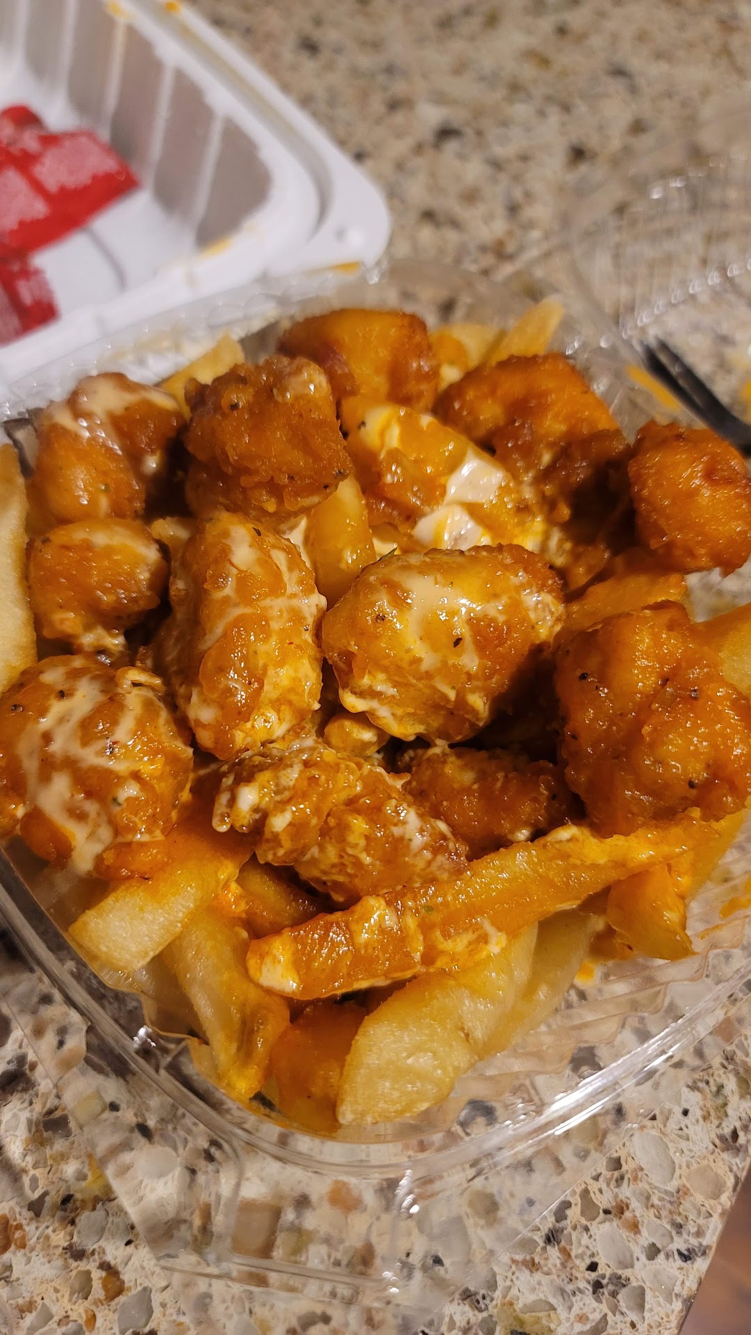 Read moreChicken? No taste. Blue cheese dressing? No taste. Fountain drinks? No taste. Service? Okay, but manager or owner, not sure, was sort of a jerk. Customer service girl was nice when taking our order, while manager/owner was breathing down her neck at the counter acting like he was looking at his phone, obviously monitoring the order and glancing at me and the order taker. Once the order was ready, they called our name to pick it up so I did. We were seated only 10 feet away and was curious why the order was not brought to our table. Upon opening our order we noticed we received only three sauces/dressing so went to the counter to request the fourth we were due. Manager/owner was again eavesdropping from halfway across the kitchen as the girl gave me the fourth dressing. From his position, without even knowing the situation, he tells the service girl, "They're only supposed to get four!" I butted in a said, "We only got three," and showed him the three when I walked back to our table. He didn't say anything. I think he should have apologized to nice girl. Atmosphere was okay, but trying to watch Bellatore fights on nearest TV were difficult to watch with a ceiling light hanging right in front of it. A lot of little things that added up, but this was our experience, and we won't...