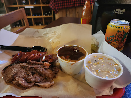 I always look for things restaurants do differently, and here it was a sampler plate that included 1/4 lb portions of brisket, sausage, turkey, chicken,& pork, all for $23. However I do not think the sampler includes anything else. I also noticed an item called "junk beans" which I later got a description of and decided to try. They are a $0.75 upcharge on plates, $3.95 a serving, $6.95 a pint or $12 a quart. The beans contain hamburger, crumbled brisket, hot sauce, sausage, chicken, and BBQ sauce.