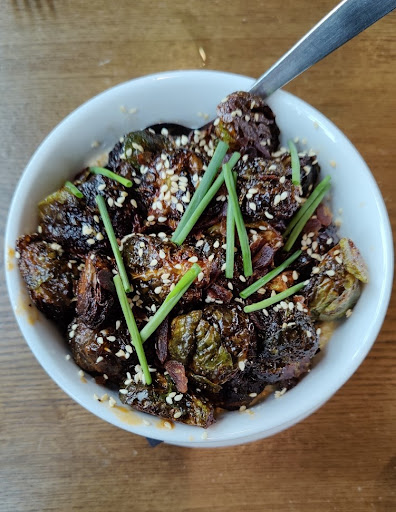 We started with the fried brussel spouts, an item I have not found many places. The server told us they were one of the top selling items. The menu described them as served in a hazelnut, ricotta, & balsamic reduction. Compared to similar items elsewhere, these held their own, and were different since they were prepared with cheese and nuts. Other places usually have a mustard garlic aioli style sauce.