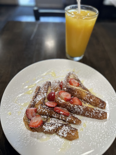 My first visit (8/19/24) to Soufflé Cafe & Bistro, a tiny but charming restaurant, was a delightful experience. Despite its small size, the café left a big impression with its scrumptious French toast (1st photo). The dish was perfectly cooked, generously dusted with powdered sugar, and topped with fresh strawberries and a unique vanilla citrus sauce. The fresh fruit medley (2nd pic) on the side was a lovely touch, adding a refreshing balance to the meal.