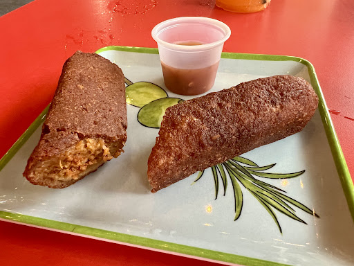 You can’t go wrong with the sampler—it’s basically the Puerto Rican Netflix of food: a little bit of everything, and every option is a win. We ordered the small one with a couple of sides and, somehow, it fed 3 adults, 2 kids, and still had leftovers… like Mary Poppins packed the tray herself. It’s the perfect way to taste a slice of heaven on earth, especially the mini pastelillos, empanadillas, and longanizas that make any diet feel like a bad joke. The alcapurrias are on another level—about as Puerto Rican as it gets, the only thing missing was Tito Trinidad showing up with a piña colada while singing La Borinqueña. Everything was flat-out delicious, period. The spot has two entrances: the main one with a hill that feels like hiking El Yunque, and a back entrance through the parking lot (perfect for grandparents or knees with mileage). Oh, and yes, they take cards and there’s parking, because they really thought...