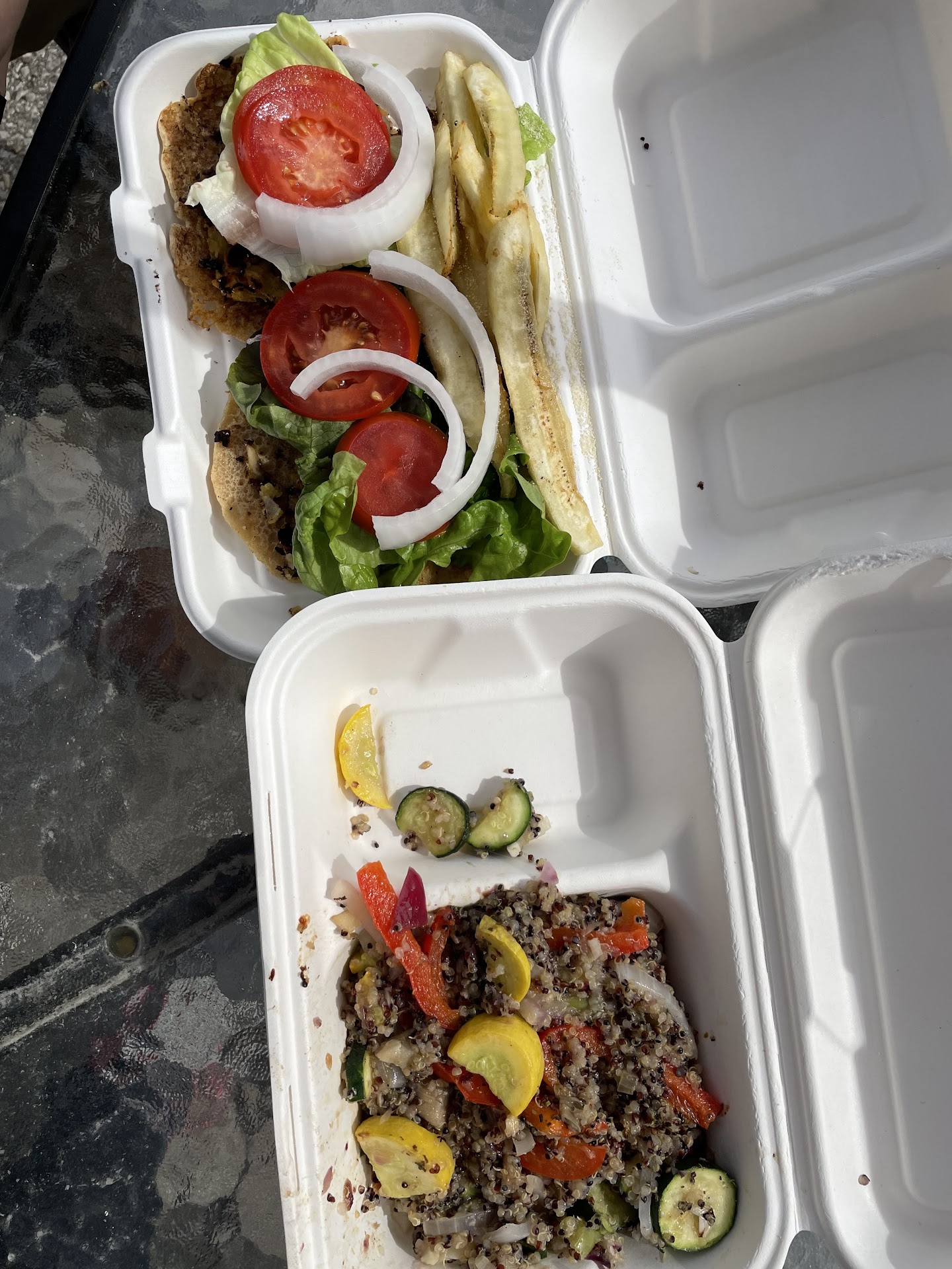 This place is sooo good!! Definitely recommend going to, it's a gem. I was so ready for some healthy food finally and totally delicious too. We tried the Ban O' Brien I believe it's called and it tasted like a delicious hash browns cassarole, and got the spring rolls which were delicious pastry roll with kale and onion for middle flavor reminded me of bread sticks also got the zausage sandwich ( nice play on words) which was like a nice stuffing flavored "sausage" sandwich. The nice guy running the business even threw in free ice cream for us! So nice, the ice cream was a mix of chocolate strawberry 🍓🍫😋 Loved it for my first try of complete vegan based foods! Pictures attached sorry we dug into the food a bit before picturing it was so good. Camera didn't...