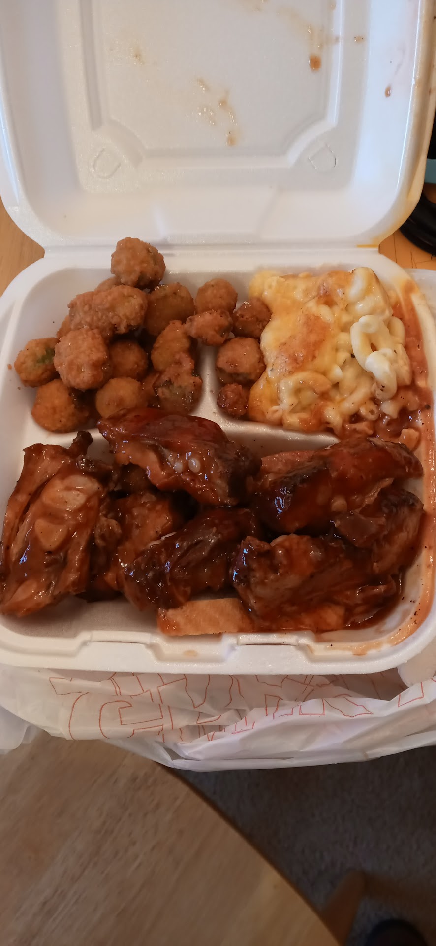 Read moreOk I always give a place at least 2 times before a review,the food is decent, really, really over priced,6 dollars for a small side of canned yams with a lot of sugar,the greens almost meat less,but not canned,the macaroni and cheese better than some, The ribs taste boiled but tender,the fish ok but could use more spice,the meat loaf ehhh,hardly if any green pepper,onion,bland,and when you buy a meal that comes with two sides expect a couple spoon fulls of those sides,we spent 60 bucks on 3 meals and ehhh,the environment ehhh,the atmosphere ehhh,and this is take out we'd not even consider eating in,in all I wish we'd have come ate when Emma was there I'd expect things would have been different,the gentleman inside were nice,and polite,but I think will give it a while...