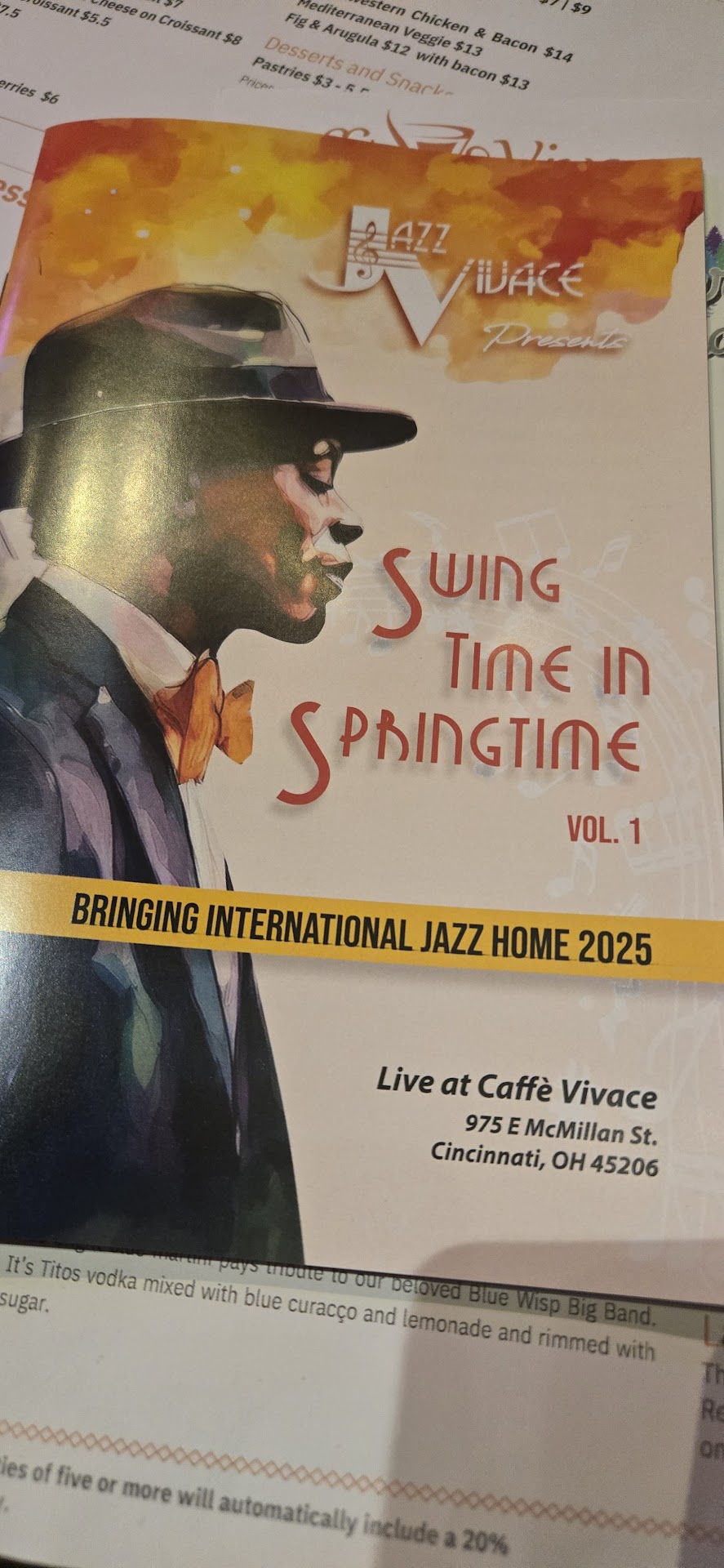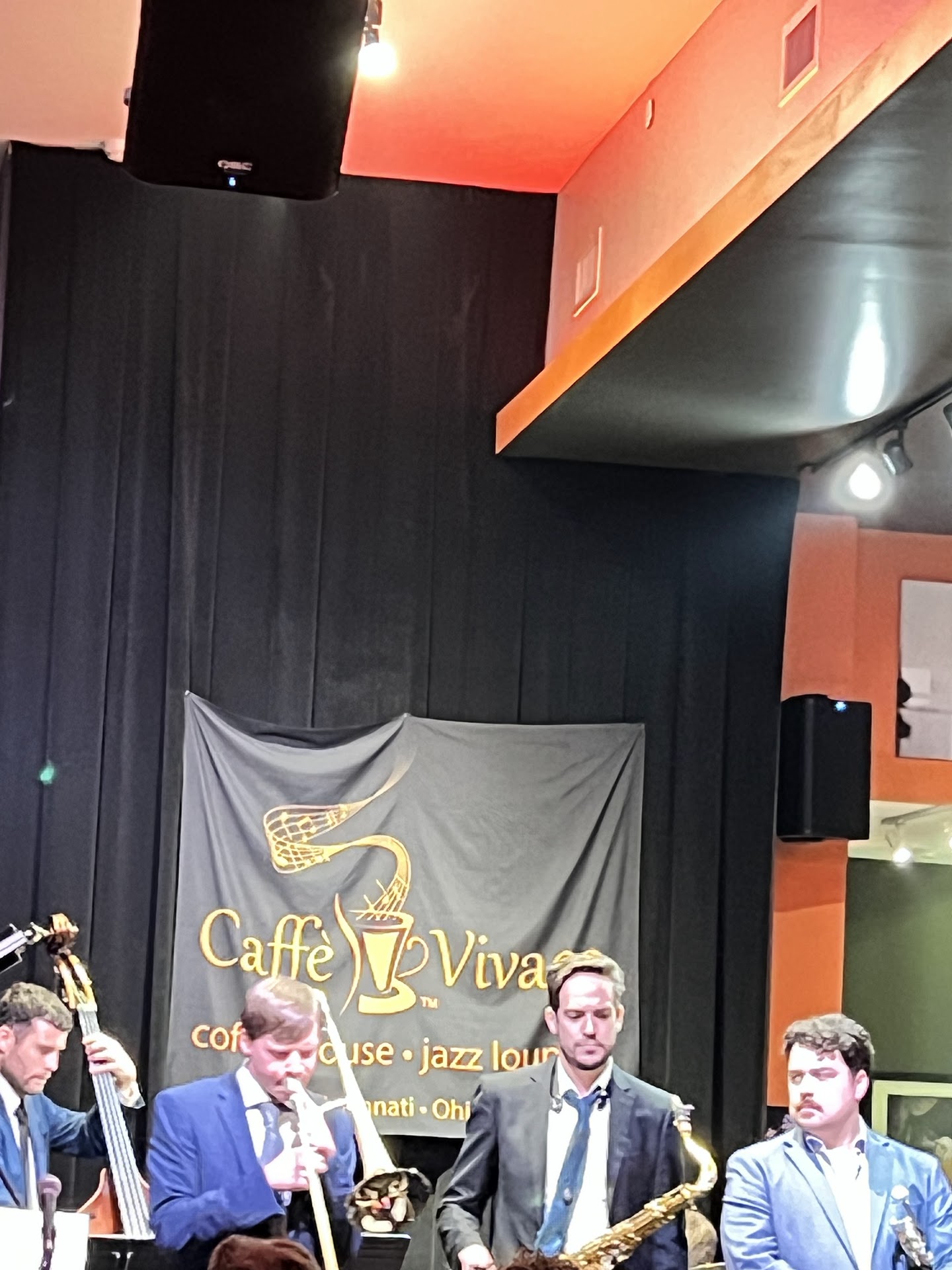 I went to Caffè Vivace to see some live jazz, and there were 2 performances that night. It was easy to locate where it was, and there's free parking very close by after 6pm, which is nice, due to it being a jazz lounge after 6pm. Before 6pm it's a cafe/coffee shop with breakfast sandwiches and a wide selection of coffee. I arrived around 9pm, and watched the first quartet finish up their set. There was a charge to sit to help pay the musicians, $10 for a stool and $20 for a table, though for tables this fee can be split (on their website it says this fee is variable and can change). There is also a $10 drink minimum per person, per set of musicians. I have need up getting food and a drink, and the food did help cover this, which I greatly appreciated. It also seems like they aren't the most strict about this as long as you order something, though that may be due to how many people were there. When the jazz musicians are performing, they have a silent policy where you cannot talk during the performances. This isn't set in stone, as you can still order and talk with those next to you, so long as you are being quiet and not bothering the musicians or the other customers who may be listening. The people who attend these are fairly diligent about this rule, and when someone was talking when I went the band nonchalantly mentioned they followed Caffè Vivace's rule of silence during performances, and that person did not break the rule again. The drinks are served fairly quickly with a low crowd, but if it's a full house the drinks can take some time to arrive, as they make and deliver them first come first serve. All the employees are very nice and friendly, and the food and drinks prepared tasted great. This is also friendly towards those under 21, with other drink options available–I recommend their hot chocolate, it tastes incredible! Past 10pm, the performances are typically youth jazz performances, though I don't know if that is every night they have live music or simply when I went, though the turnout was easily 15-20 college students (which amounted to an almost completely full house). I thoroughly enjoyed my visit and recommend other check it out if you...