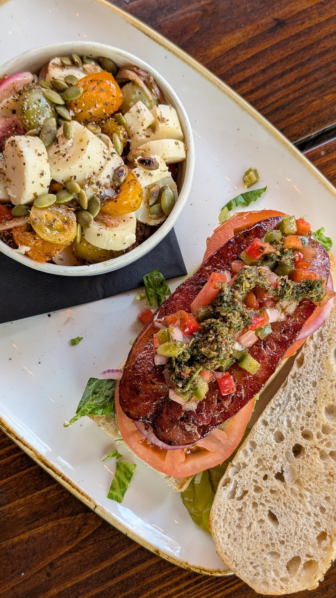 A major letdown was the lack of attentive service. The server spent most of the time on his phone at the bar, only approaching at the end of our meal to refill water. Had he checked in earlier, I would have requested a proper side salsa to enhance the empanadas with a bolder, tangy, and spicier kick. The provided olive oil-packed Chimichurri and blue cheese didn’t do much to elevate the flavors, leaving the dish bland and uninspired.