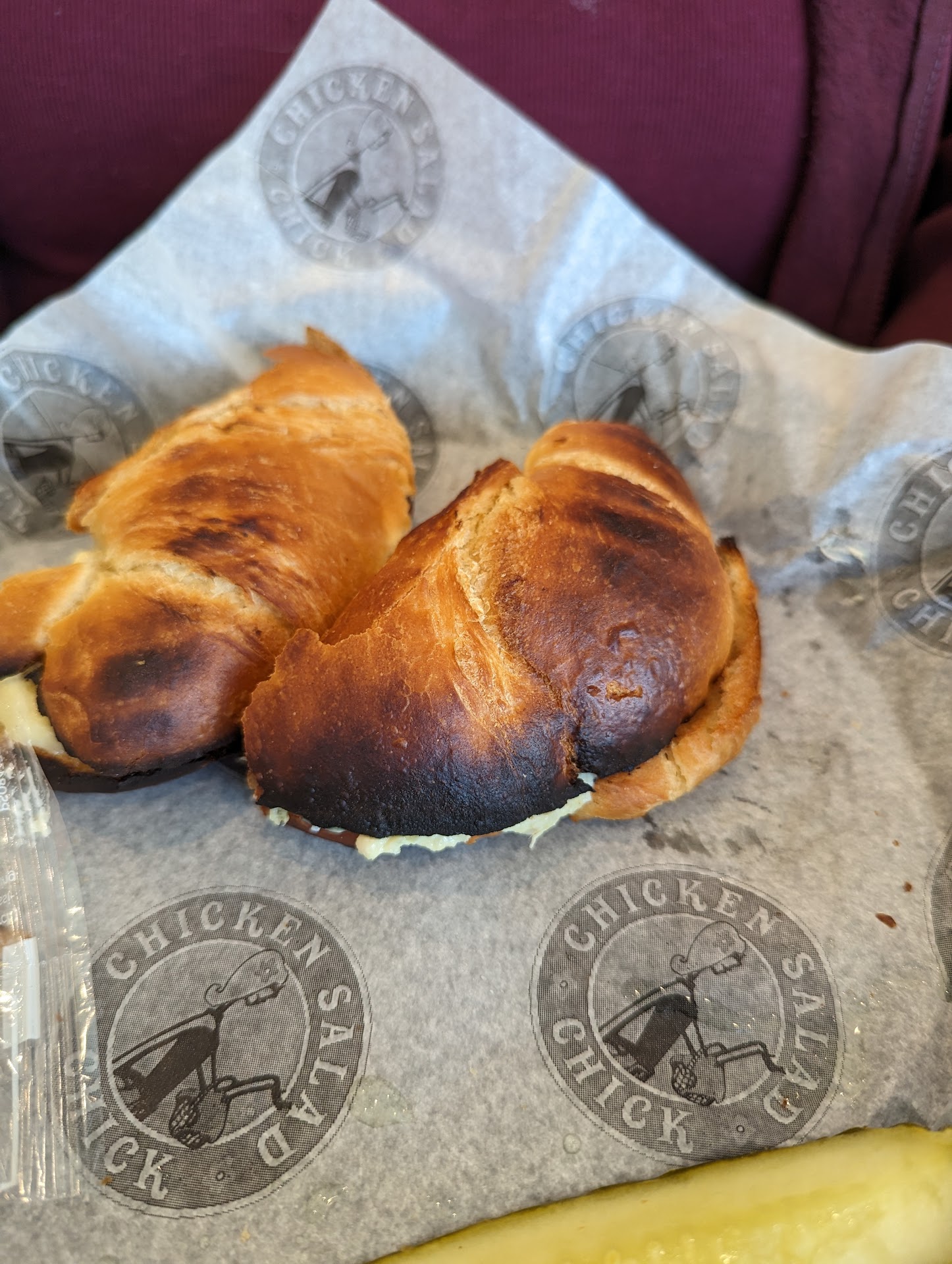 Read moreTried to be graceful, with giving 2 stars, but after realizing just how bad it was, and the fact that my money went to waste, I realized it wasn't even worth that many. Food was not all that and way over priced. I couldn't even eat the croissant sandwich from there. It went to the dog. How can you mess up a friggin sandwich? lol. Their meat tasted processed and slimy, and their pesto mayo made the sandwich soggy, and wasn't good at all. Overall, the sandwich was bland and soggy. Their pasta salad wasn't all that either. Noodles where very chewy, and didn't taste good. Also bought their chicken salad with walnut and grapes, hoping it would be at least a little better, but nope... it also was also not all that, not much flavor, and had like one or two grapes in it. I couldn't believe how busy they were with such low quality food, and it took so long for our food to come out. I guess everyone wanted to check out the new place in the plaza like we did. Literally, these are just glorified lunch meat sandwiches. Seemed like they were using the cheapest quality bulk meat they could get. Not impressed at all. You're better off...