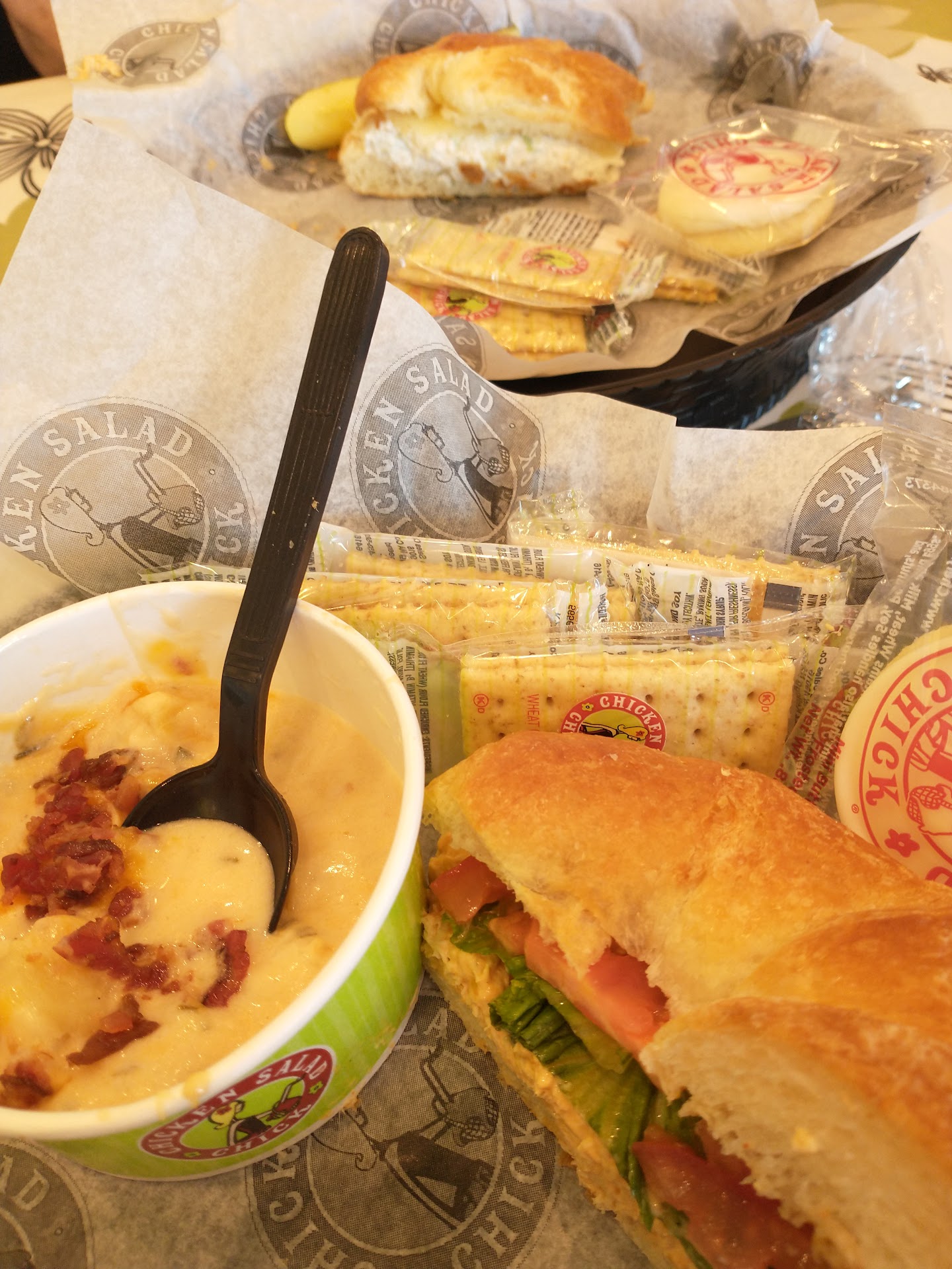 Keep in mind this is a chicken salad specialty restaurant, so don't come here expecting much else. (Egg salad, pimento cheese, soups, and a kids menu are the exceptions.) Prices are reasonable. Food is fresh and delicious. Meals generally include a side dish and a cookie. Your choice of having the chicken salad on fresh bread, a croissant, or as just a scoop on lettuce. (The bread/croissant are very filling.) There are 12 varieties of chicken salad. Haven't yet tried them all, but the 5 I've had are very tasty. One of my companions raves about how good the egg salad is. As for sides, the broccoli salad is unique and flavorful. The fresh fruit always manages to contain blueberries and strawberries, even when not in season. The green grape salad is like having dessert - I recommend trying it at least once. Staff at this store is top notch. Raquel went out of her way to assist one of my companions to ensure an excellent experience. We found out the strawberry lemonade is made fresh every morning using strawberry puree. It's delicious. The store is very clean and bright. It can get busy at lunch time, so plan accordingly. Since this store is in a shopping center, there's...