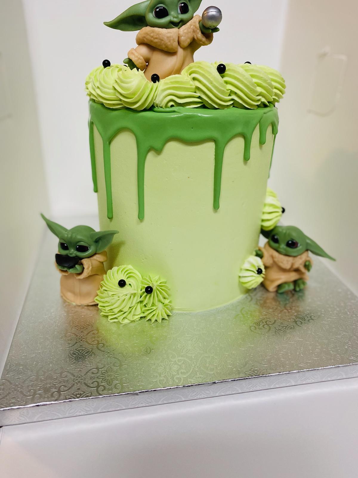Read moreI could not be more pleased with my experience ordering a custom cake for my husband's 4(0)th birthday!! I asked for a Mandalorian/Grogu, Strawberry flavored cake and she executed it flawlessly! Not only was it beautiful, it tasted delicious. And not surprisingly, because she makes her own cake mix by scratch (and sells the mixes). Thank you for helping to make this special day even better! *Please note, the cake looked perfect (1st pic) when I picked it up. Baby Yoda just got hungry on the way to the party (2nd pic). YOU will get a perfect looking cake from this...