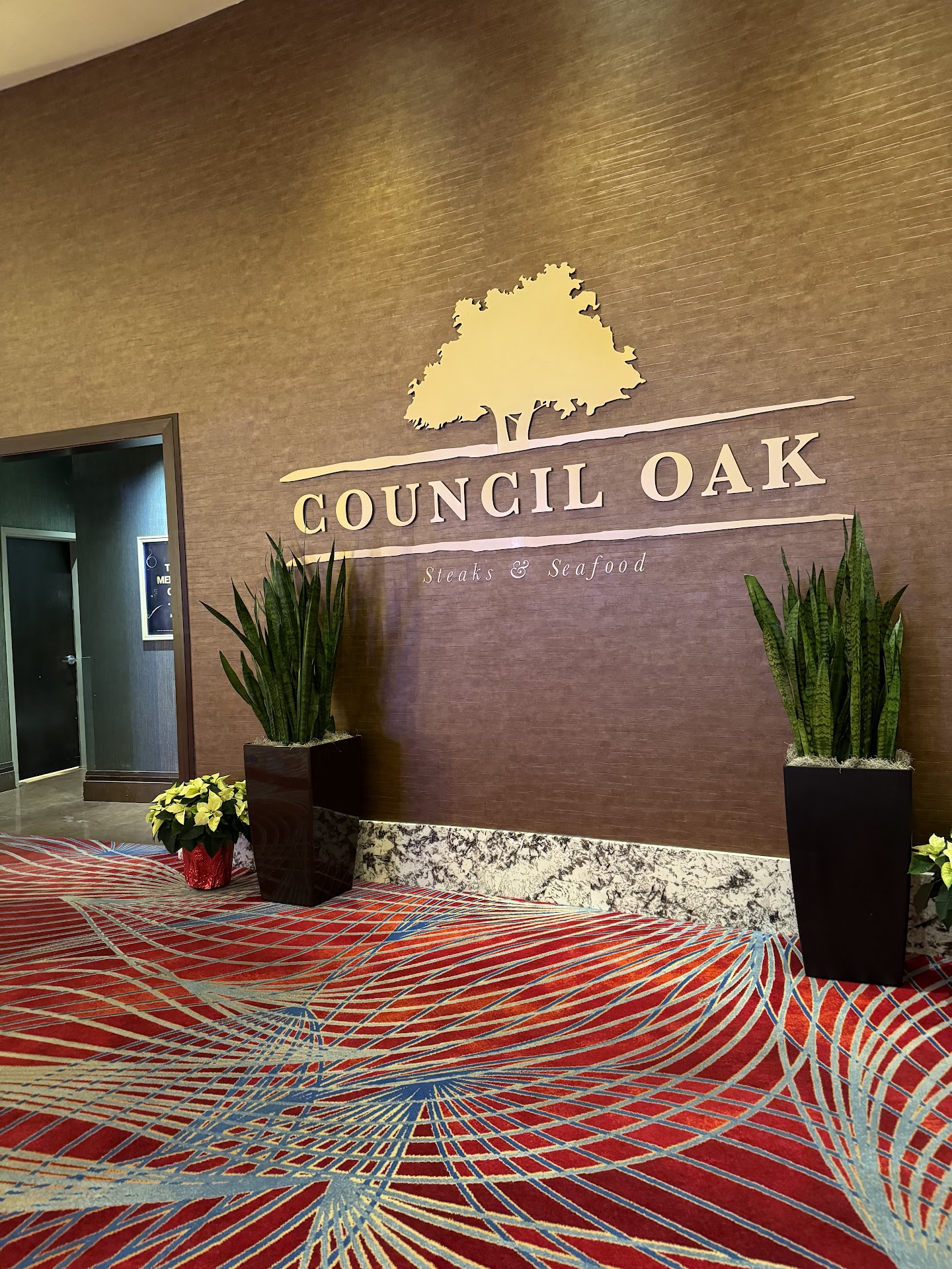 Read moreOK we have been to a LOT of restaurants inside of casinos. We just moved to the area and decided to give Council Oak a try for my wife's B-Day weekend. It helped that I gamble a little and got a few dollars off-not comped yet. It never ceases to amaze me that (high end) casino steak houses will let anyone come in wearing anything. Shorts and t-shirts are welcomed here FYI. (and that alone pisses me off) The table settings are really nice. We went to order and the waitress didn't get out a pad and so I figured she was going by memory? So gave her my order and then had to repeat the whole thing again as she DID need something to write on. Told her about it....and she didn't seem too pleased I called her out on it. We had the crab cakes, NY Steak, salads, mushrooms and a few other things. Service was IMO lacking for the prices that they are charging here. I mean at these prices, you can eat at Jeff Ruby's and dress up (mandatory). Plus JR's is a step above here and just about every other restaurant in Ohio. The waitress took about 5 minutes to greet us and get waters. The water girl said she would bring bread...never did. Got our drinks and the crab cakes and finally got some bread. Then I was trying to use the PEPPER on the table and it had ZERO pepper in it!? So not that big of a deal and they brought me a new one. Then entrees took a while. Hadn't seen waitress or anyone in a while. Then I guess our waitress was busy and some other guy brought out everything. Plopped it on the table and started walking away. I said "hey sir....hey sir louder" and was ignored. I actually followed him towards the kitchen and grabbed a manager. He HEARD me, but maybe our waitress said we were difficult to him/others...IDK...IDC....I never got a freaking steak knife for my STEAK...and he was acting like he didn't hear me? I SW Josh the GM after the manager and he apologized. I was just being honest with him. "At THESE prices, it should be better and smoother. We told him we weren't trying to get a discount/free food or anything...we just are used to better service for THIS kind of $$?!" He agreed and we let it go. They did comp us a B-Day dessert. The GREAT news is that the FOOD made me still give them a 5 star rating! Everything was fresh and fantastic! We will be coming back for another experience to see if this was just a bad night...