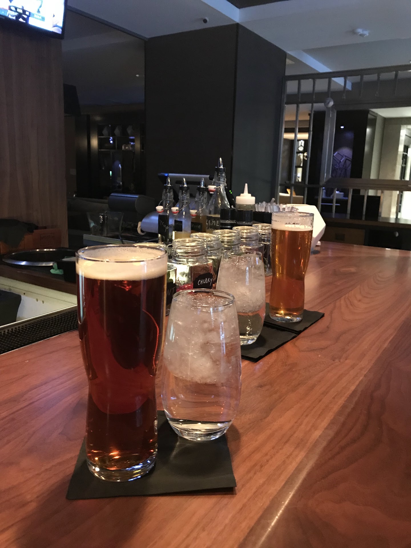 Worst Service Ever. I was staying at the RENAISSANCE after the Bengals vs Raiders game, so it was predictably busy. However, prior to the game the bartender informed us they would be serving food until 11pm. I came back after the game, and was able to sit at a table near the bar. Apparently that one table was not eligible for table service, while every other table there was? Nobody actually said that, but nobody came to our table in the 1-1.5 hours that I was there. I was, however, able to get one drink while waiting at the bar for over 20 minutes during that time frame. I went back to get a second drink, and after waiting another 20 minutes a different table came open.