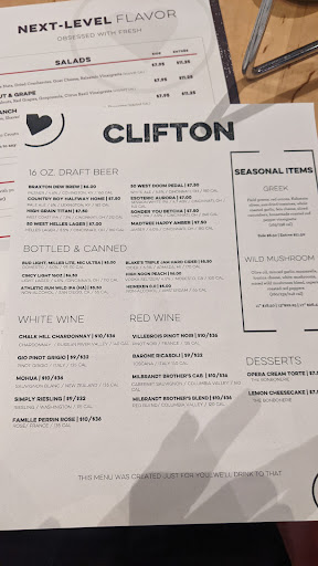 Read moreThis was a must to do in Clifton from what I heard, so went and tried it. The place is cozy, clean, and nice. Personnel was very kind with a smile to offer at all times. They have a drink menu with a variety of alcoholic beverages and Coca-Cola company beverages for nonalcoholic beverages (I am including a picture of the menu). Options to eat include salad, calzone, and pizza. They have already established pizza or you can build your own. you can also make a half-and-half pizza, meaning you can have two different types in just one pizza. I tried that and had a pizza half don Corleone and half Porky fig without onions. They have spicy, salt, pepper, and parmesan cheese on the table to add.