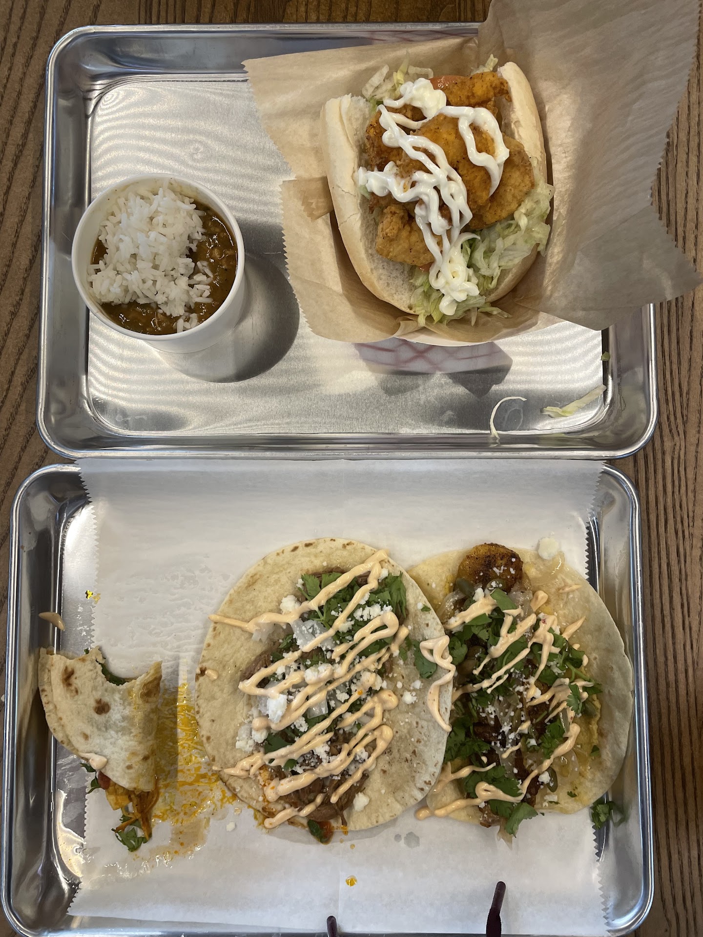 Anything here seems to start at $11. Then, you add meat, or a side, and a drink and you are out an easy $20. Add a drink from the bar, and that's another $10. At least at a restaurant, you are afforded a table, service, and a dining experience. This type of place makes you work for everything. Stand in line, forgot to order something... Have to go back through the process. Want a drink from the bar? Get up from your table and find an available bar tender. Want dessert? You have to go to a different vendor. As a consumer, going to a single restaurant allows for efficiency in how the food is prepared, ordered, and delivered as the final bill. Because a place like this is trying to be "trendy", now for each kind of food you want, you have to pay the individual stall their portion of the stall rent, food procurement, staffing overhead, etc. These kinds of inefficiencies are probably why the food prices cost so much. Property Investors seem to be the winners in this style of dining experience.