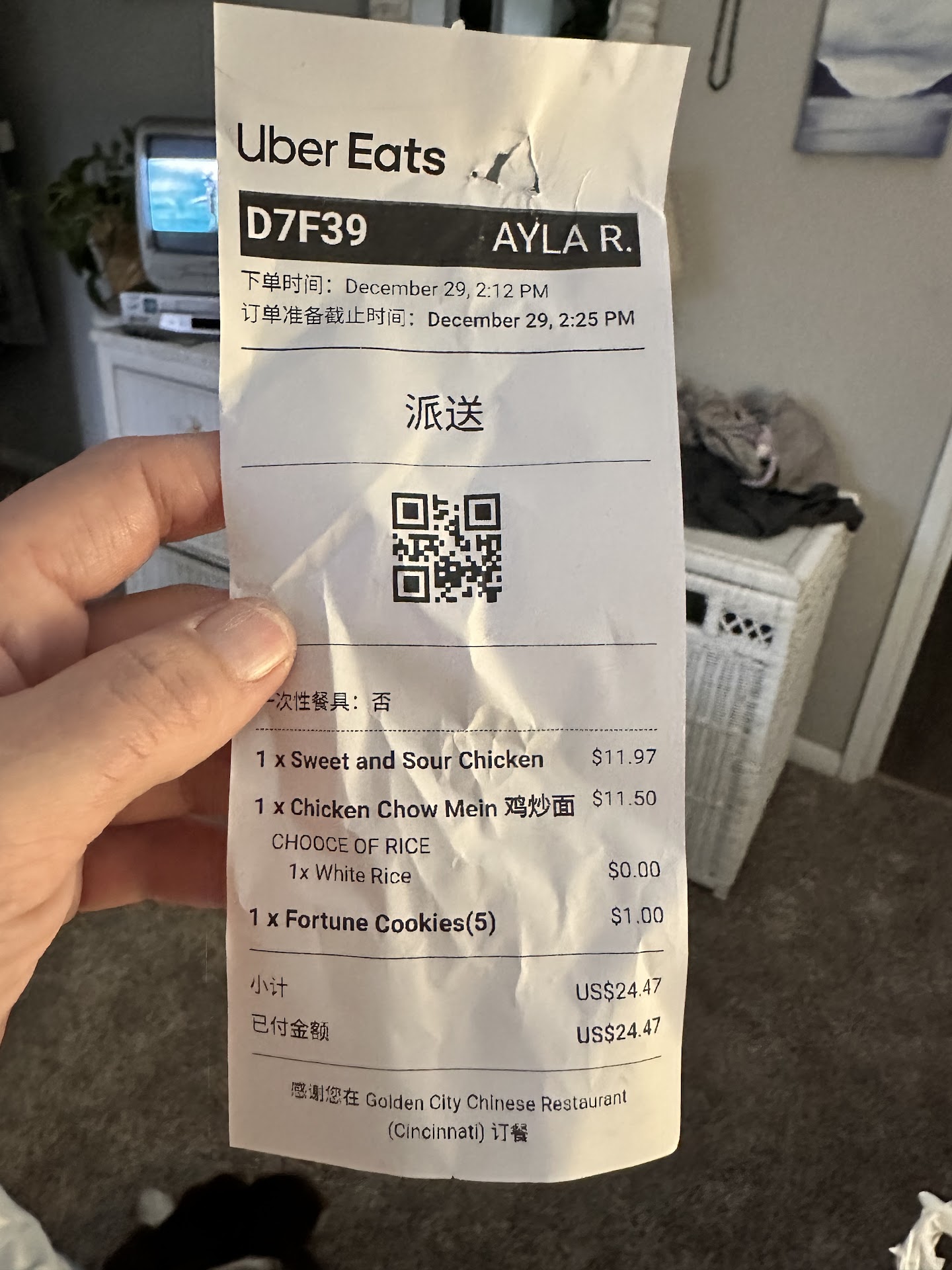 First Time Ordering And It Was Through Door Dash. Everything WAS SO GOOD. I Will Be Ordering Again. I ordered a chicken fried rice chicken lo mein and sweet and sour chicken with a hot and sour soup. Starting with the soup everything it was perfect the vegetables were fresh and it wasn't just a whole bunch of liquid in a tub.m. it was Hardy. The chicken lo mein was tender but it wasn't mushy and it lasted for the next day still tasted fresh and not over oily... The sweet and sour chicken it was meat mostly meat instead of a whole bunch of batter.. the meat wasn't dry it was juicy and tender and the sauce was thick and had consistency through it instead of all running... The flavor to the sauce was perfect it didn't taste like you just had colored sugar and liquid form..lol.. and did the chicken fried rice was very good it tasted fresh the peas weren't all hard and dry the carrots weren't all shriveled up they were plump and the rice separated perfectly instead of staying all clumpy together and it was still fresh the next day. Thank You...