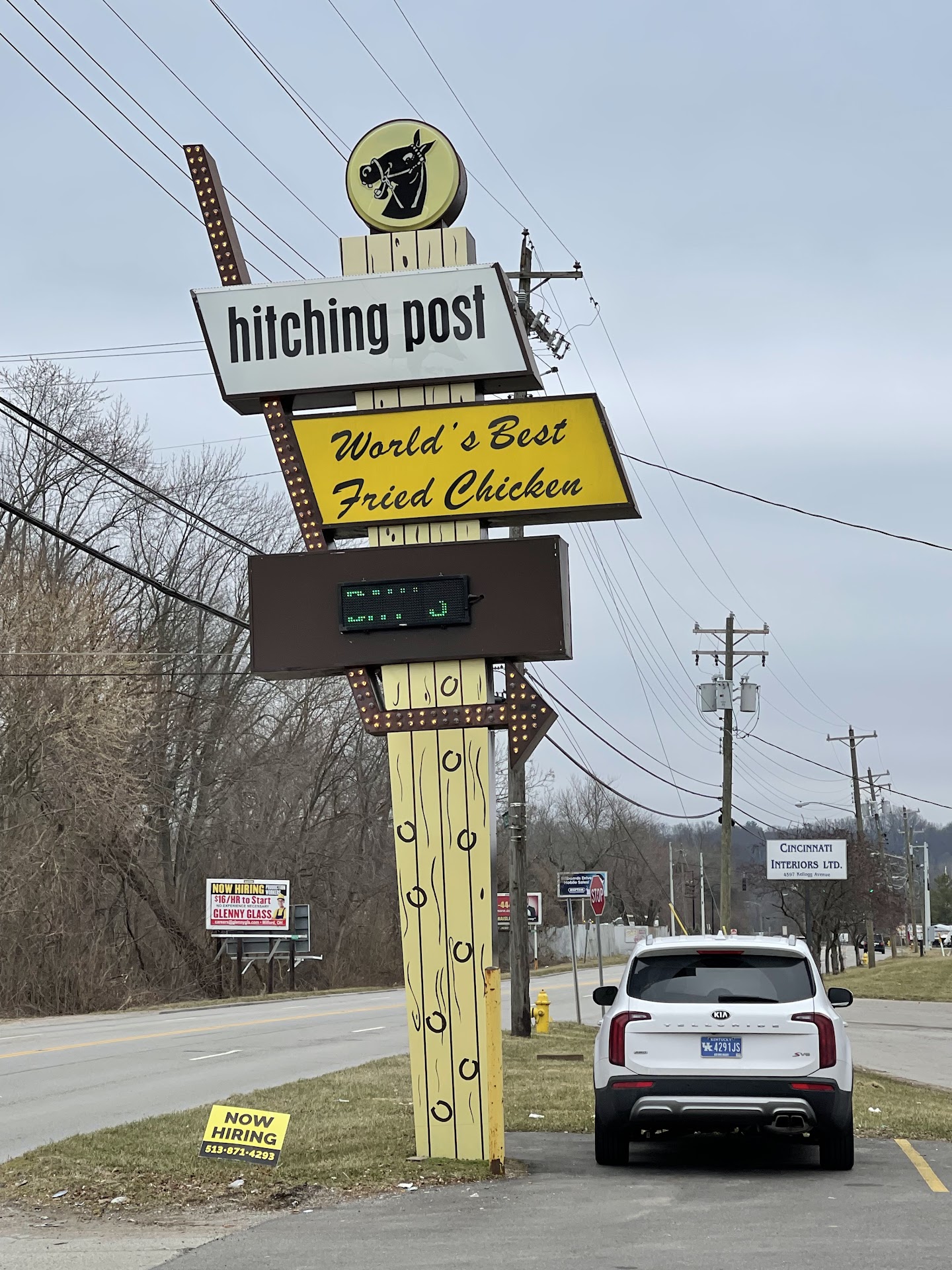 Read moreOn the way to Coney Island Christmas Lights, The TuesCrew of Ohio TuesDayTrips looked over the eateriesâ in the area and decided on supper at Hitching Post - World's Best Fried Chicken. Yup, they advertise on Google, on their sign and on the side wall of the building that they serve the âWorld's Best Fried Chickenâ.
