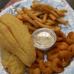 A young girl worked the counter, her accent giving away that she was likely from somewhere in South Asia or the Middle East. I ordered the usualâLunch Special combo number 1: one piece of deep fried tilapia, five pieces of headless shrimps, fries, and a free drink of choice.