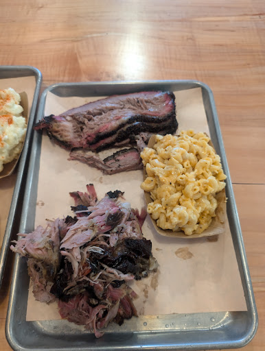 The brisket here is excellent, so moist and flavorful that sauce is not required. I tried all three sauces, and they were all good, but I used them sparingly, to avoid overpowering the wonderful flavor of the meat. The coleslaw was very good. It seemed to be dressed with oil and vinegar, and had finely chopped celery and onion in addition to the common cabbage and carrot. Potato salad was good, too. Staff were friendly and helpful. The fountain beverages were Fountainhead brand. I sampled a little of several flavors, and they were all tasty.