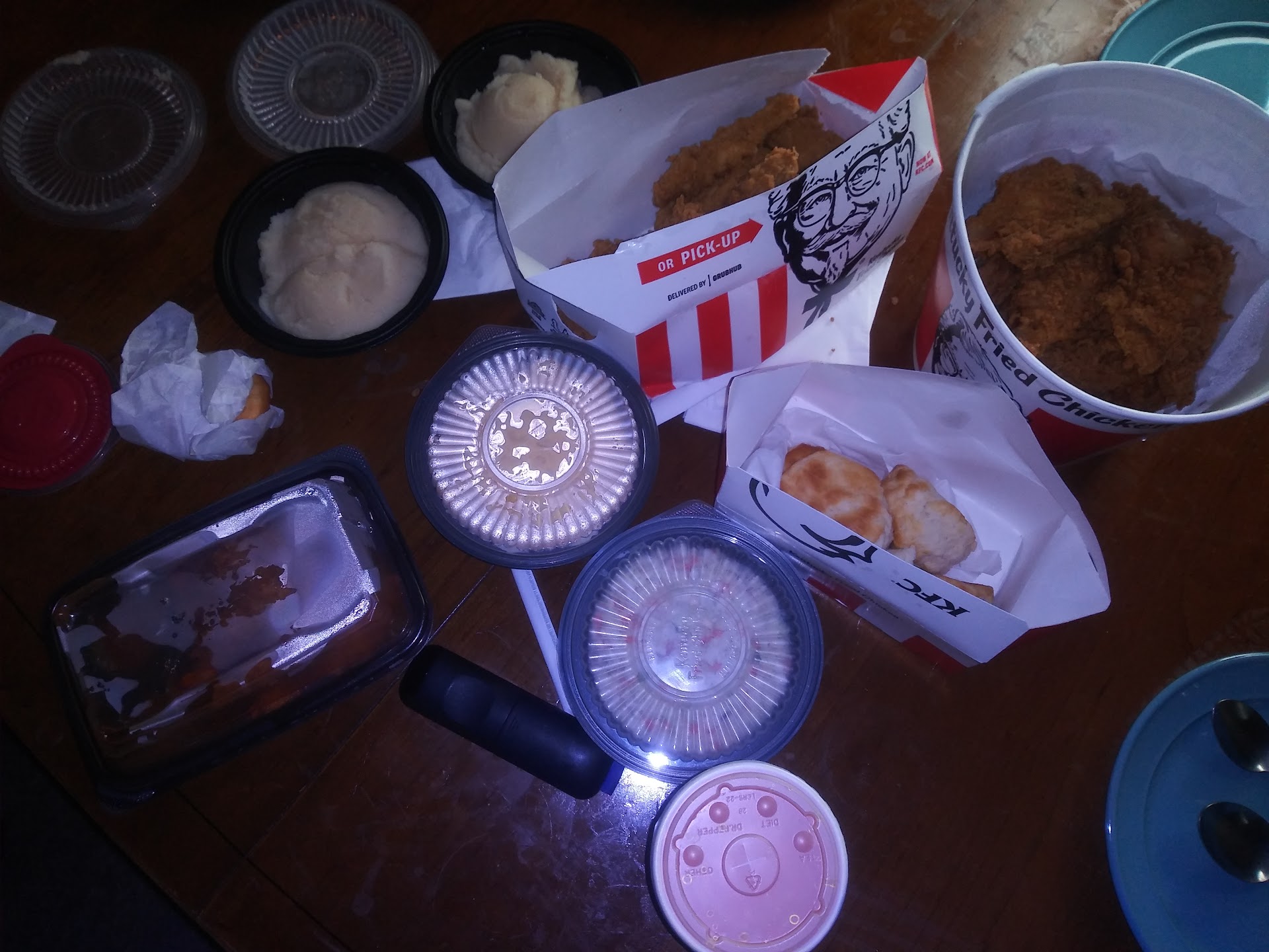 Read moreThis was the WORST experience I have ever had from KFC. I get it, it's fast food, it's cheap and I shouldn't have high expectations. But this trip has been a very thorough disappointment. I go to the lobby to order and it seems that nobody was really paying attention to doing their job. The employee completely walked away after taking the order of the person in front of me so I had to sit and wait for somebody to actually care enough to come back around. Then they weren't really paying attention while I was ordering. I go to fill my drink, slip and almost fall because the floor was soaked from them mopping the floor. No wet floor sign in sight. Get home and try to eat the food. My mom found a bone in her pot pie, the mac and cheese looked like it was scraped from the bottom of a burnt and dry container, the fries were old and cold, and the chicken tasted extremely peppery, old, and like it was fried twice. It literally looks the wrong color. This place needs new management if they're serving food...