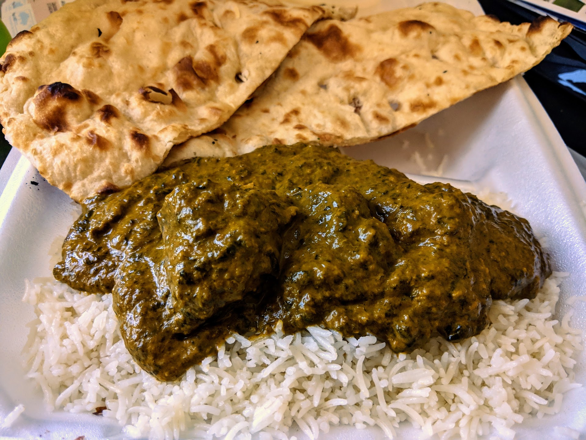 Read moreDefinitely an above average Indian spot. The chicken tikka saag was a solid step up from what you get at a standard Indian restaurant. It tasted a bit "greener" which is definitely a welcome change, imo. The rice was basic, seemingly just ghee and rice. I prefer my rice with a bit more flavor (cumin seed, etc), but that's a minor quibble. The samosas and chutney were pretty standard.