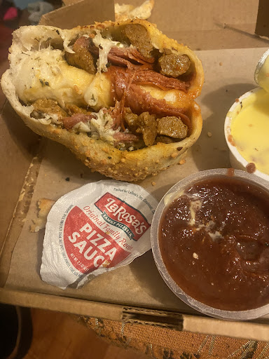 Ā Ā Ā Read moreOnly ever had it delivered to work. Order was only wrong once (ordered salad w/o olives and they put an olive in there, no big deal). Always delivered on time/a little early. Always tastes good. Mozzarella sticks are usually a little lukewarm by the time they get to me though. Still good.