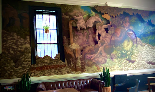 Intimate and romantic spot. Dim lighting, beautiful mural on the wall, and a sexy leather couch that's great for deep conversation. I like the vibe here a lot. They offer a large selection of wine and beer at very reasonable prices. It's also a full bar if you're not into wine and beer.