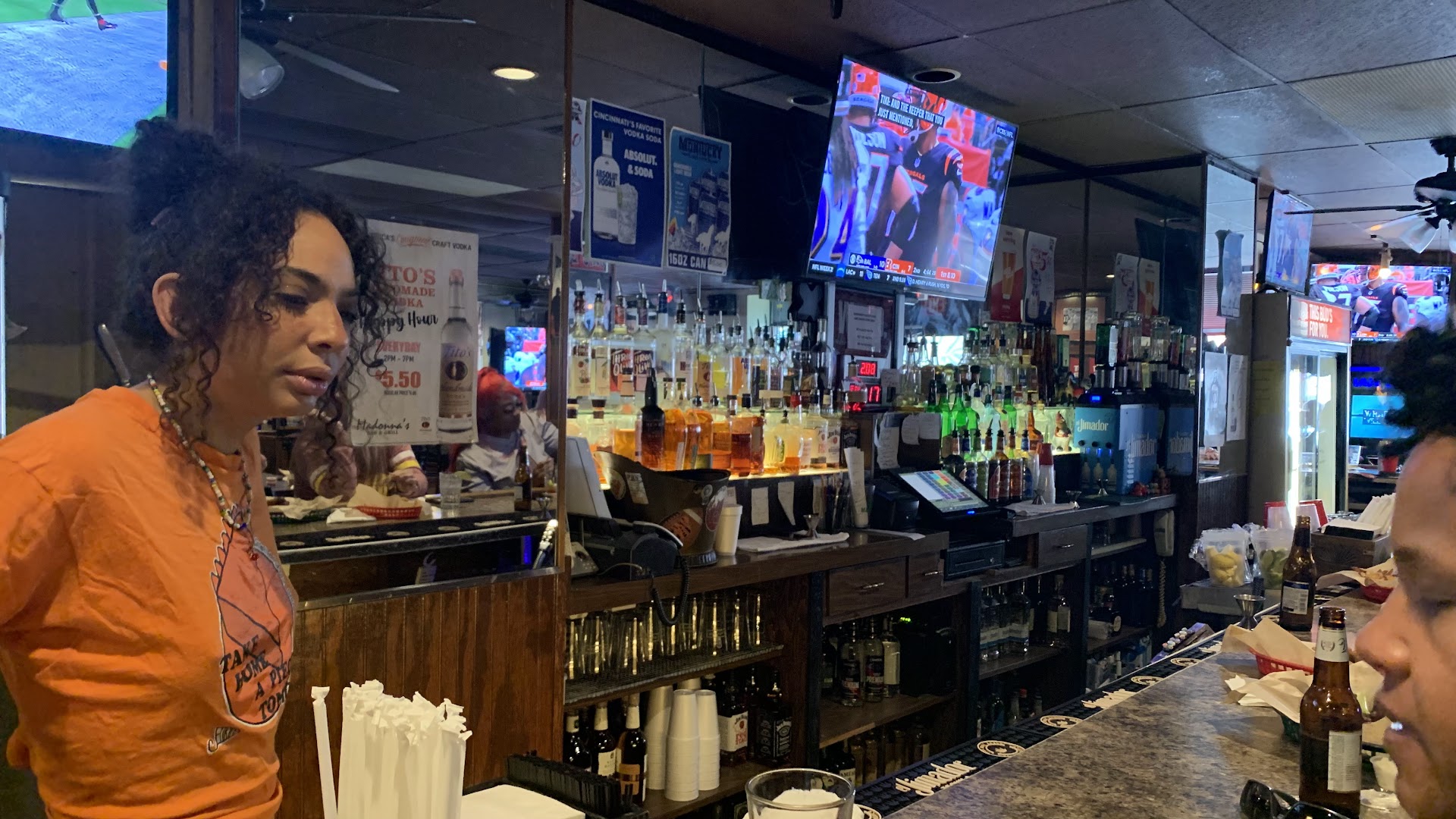 Great cinci dive. Atmosphere looks like it used to be a smoke/stripper lounge; it has that feel. I like that in a dive, but maybe not everyone. SERVICE WAS STELLAR: 5-stars to Ali; she ran the bar, handled the Bengal fans and kept service running without delay. And she made up for the kitchen…