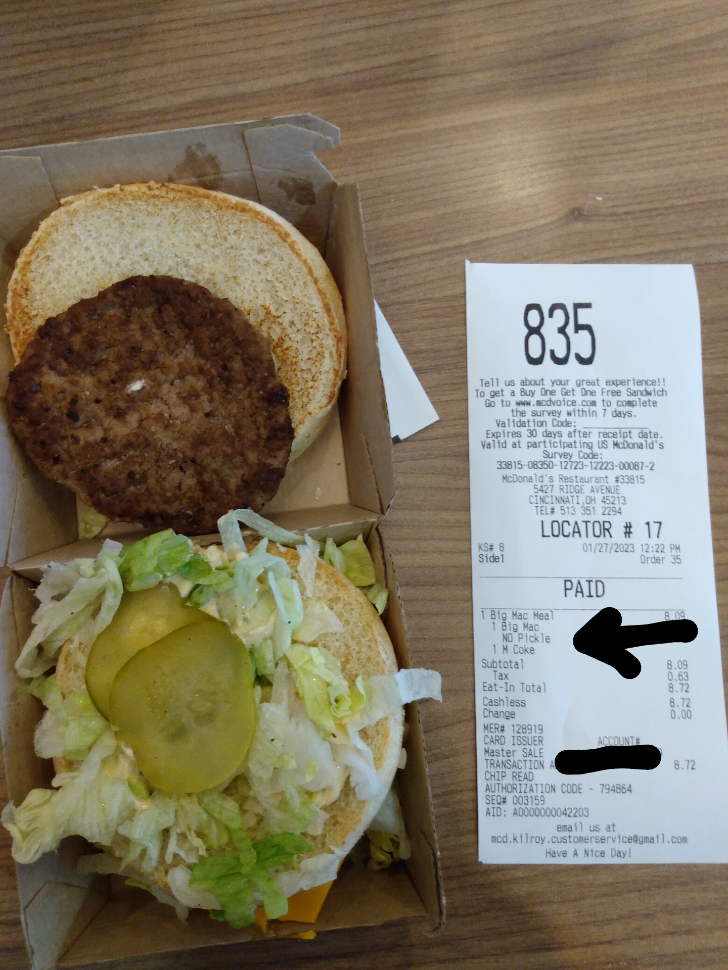 Now the bad. My last three trips there my orders have been wrong always short something. Every time I use the drive-thru, wait in the pickup spot, and except for this most recent time end up having to go inside to get my order corrected. First time was short a large order of fries. No big deal walked inside showed my receipt got my fries. The next time I was sure to check my bag before I left the parking lot and sure enough short two double cheeseburgers. Again went inside showed him my receipt and was handed a bag. Walking out I checked the second bag and I had only been given one of my two missing double cheeseburgers. Went back to the person I had spoke to and they got me the other double cheeseburger. Now just this evening I once again checked my bag all four items were in there so I headed home. Silly me I should have known it wasn't going to be correct. It was close this time the only thing wrong was my double quarter pounder only had one patty. Again not the end of the world but for what they charge for those things it would be nice if it was correct. So if you're going to this location be sure to check your order. Oh and a fun little side game I play is always say thank you to everybody I interact with there and see how many it takes before I get a reply. Had a high score going until the lady who brought my food out today said you're welcome, ruined...