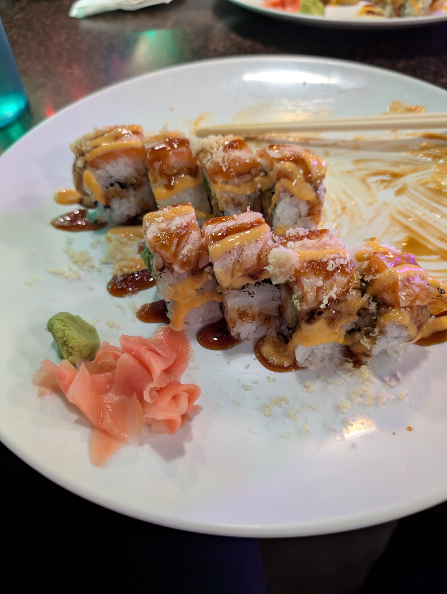 Terrible. We used to be regulars here, and now we'll never go back. I overheard a worker say that ownership changed recently, and it really showed in the worst way. Everything from the food, to the cleanliness, and the looks of the place just screamed "CHEAP!!" which is crazy when my fiance and I walked out with a $54 bill because you need 2 rolls for a full meal, and we had 1 appetizer. And I still find it odd that they keep doing the whole "$18 rolls, but everything is half off Monday-Sunday." Like just put them as $9 on the menu??? The online order prices are different anyways, so I don't get it.