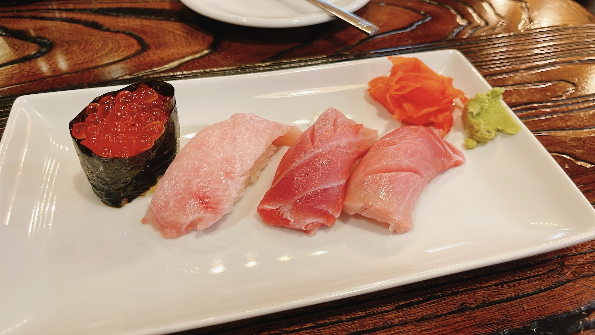 Secondly, THE FOOD WAS GREAT!! We had 2 sushi rolls, 2 nigiri pieces, and a TON of sashimi. Every bite was cherished. The fish was actually fresh despite this being a landlocked area and there were selections you cannot find at many places near here (such as tako, hotate, saba, REAL otoro). It was all juicy and melted in your mouth. The chef made our sashimi platter and delivered it to us so he could explain which cut was which, and even added sesame oil with sea salt to enhance the otoro (fatty tuna). Ifykyk. His cuts were precise and it was all plated beautifully.