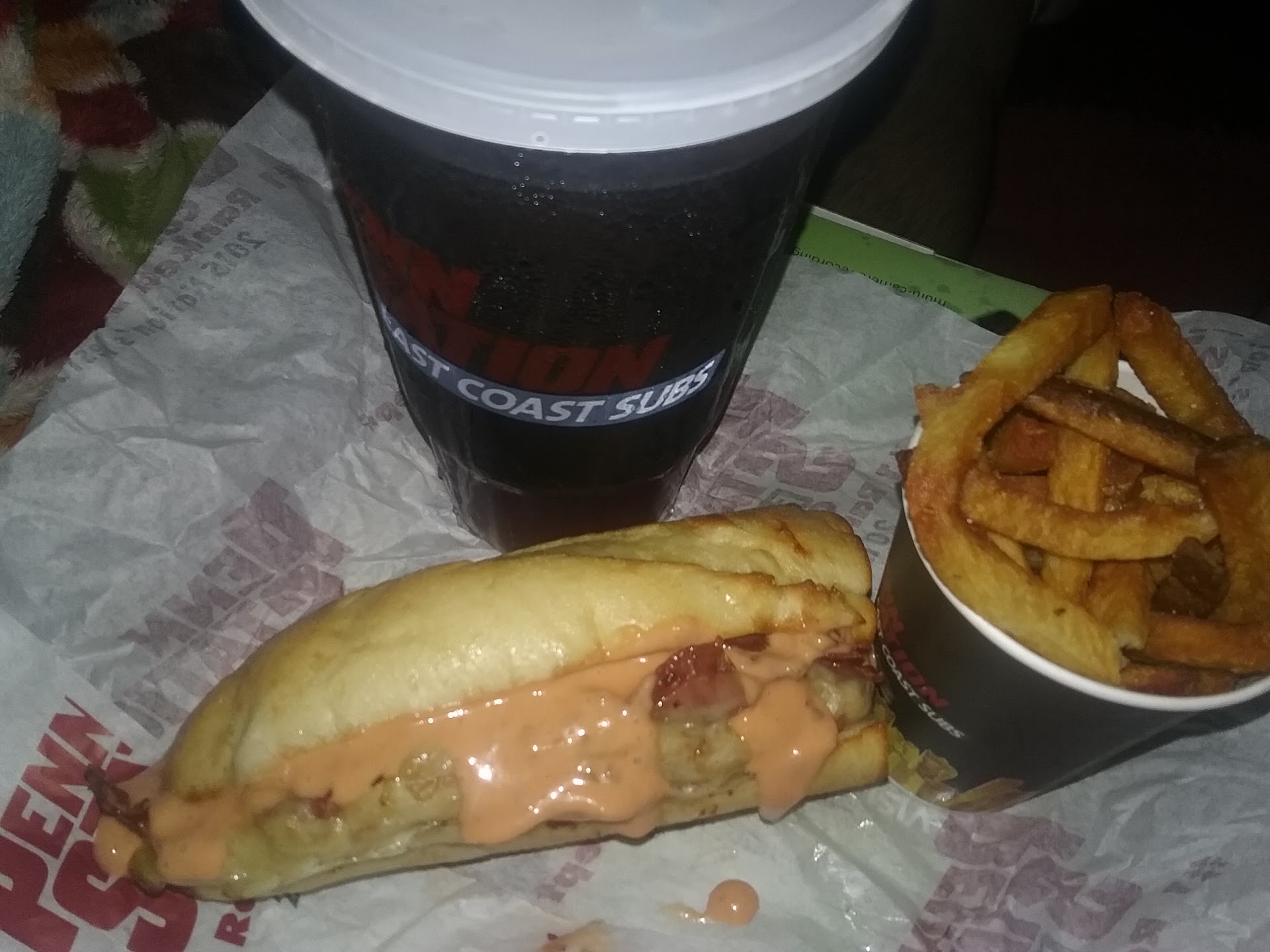 Read moreThis location is very easy to access coming or going. Once I went inside the young lady who took my order was friendly and then I was sent to the far end of the counter to pay. I stood there for several minutes even though there were plenty of staff to handle the food prep. Once the guy (I assume the manager) who finally came to ring me up gave me my total and acted as if I was annoying him. The dining area is messy so I had to walk around looking for a semi clean booth. The soda machine was out of ice, which the staff obviously knew because they had a little tub behind the counter which they failed to offer. The bathrooms were disgusting and reeked of urine. Over all the whole location is lack luster but the food was hot and tasted good. I was actually going to leave 3 stars because of the food being tasty but tonight Penn Station has left me with a nice case of...well, I'll just say upset stomach. I won't be going back unless I'm looking to lose a few pounds with the food...