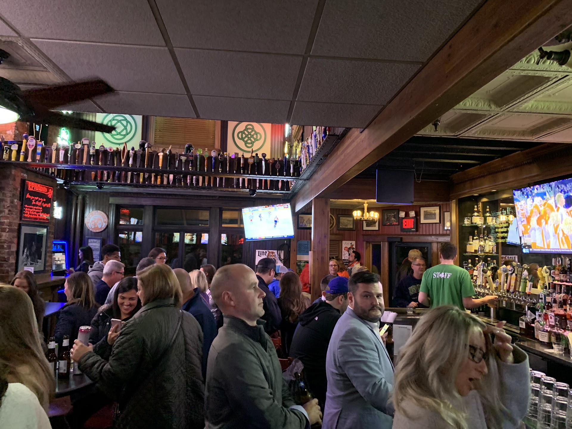 Read moreIt's JUST a bar. STALE popcorn is the ONLY edible - which isn't "Food" by any stretch of the imagination. There is ZERO service (one pays at the bar with a SADLY Scant selection of beer). ATMOSPHERE? JEEEZUS there are a few TVs with sporting events on them and an effing wooden HARP upstairs. What, in the name of GOD, makes this an even remotely "IRISH" pub? SICK stupid joke. We won't be back. Trivia Hostess might as well have slept through the evening playing on her phone. She was clearly as BORED as I was. I'd give it zero stars if that was an option. IRRITATING EXPERIENCE and a...