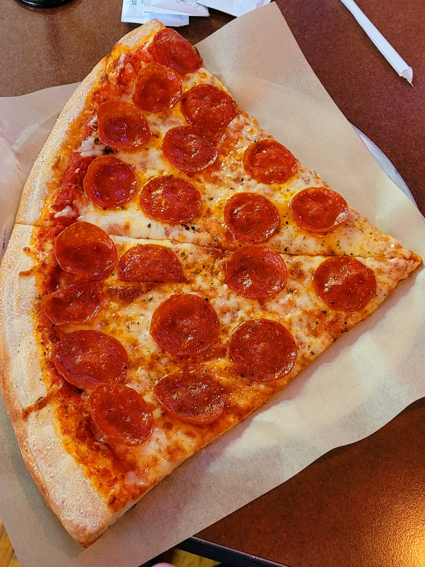 Read moreNot New York style pizza. Poorly executed, the flavor relies solely on overpowering garlic and salt. This could be a decent pizza, the crust is 6/10 (but definitely not "New York") the cheese is very good, and overall the ingredients are good quality. The problem in the complete over-reliance on garlic and salt, rather than knowledgeable spicing. Great atmosphere, clean, good staff, even a decent beer selection and a good, Italian, Chianti. We really wanted to like this pizza, but the flavor was like sucking on garlic cloves dipped in salt. Every other nuance of flavor was lost, the quality flavor of the cheese was overpowered and even the pepperoni flavor was just crushed by the overuse of garlic.