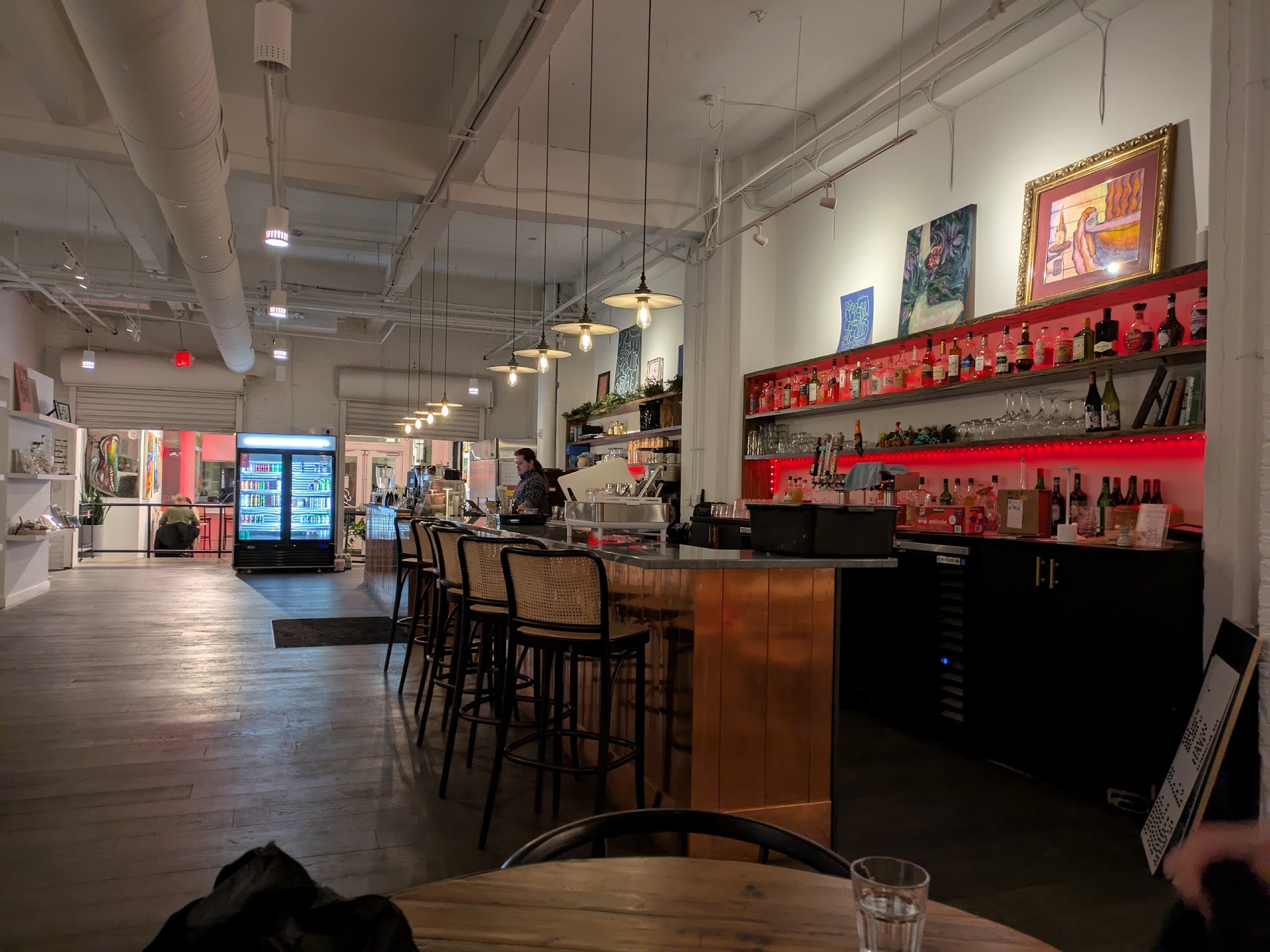 Read moreWe visited the Red tree after a concert at Music Hall. We were looking for a late coffee and this place is only a block or so away. Sergio provided excellent service and advice on ordering. They also serve cocktails and some food items. This place was perfect for what we had in mind. The atmosphere was great with high ceilings in an industrial setting. They also serve as an art gallery with local artists works. I highly recommend this place for before or after a performance at Music Hall, The Shakespeare Theater or any other venue near...