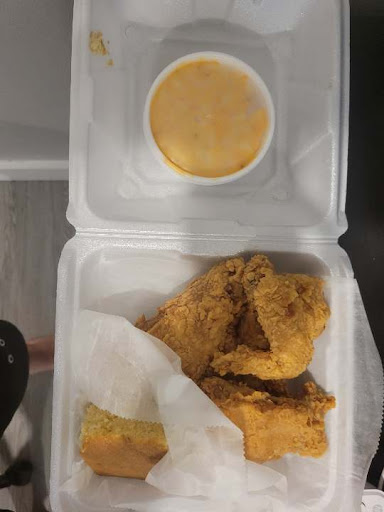 Read moreI got the 4 Piece Chicken Dinner with cornbread and mac and cheese. Overall it was very good. I got the mild chicken which was very crispy, juicy and all around seasoned well. There is also a spicy option which I will try next time since the regular on its own doesnt have any kick to it. The mac and cheese was a cheddar mac and cheese and wasnt too chunky and tasted very good. The cornbread was also very good as well not too moist or dry and very buttery. Overall a very good fried chicken place for a good price and short wait time. In my opinion it's leagues better than any other fast food fried chicken place...