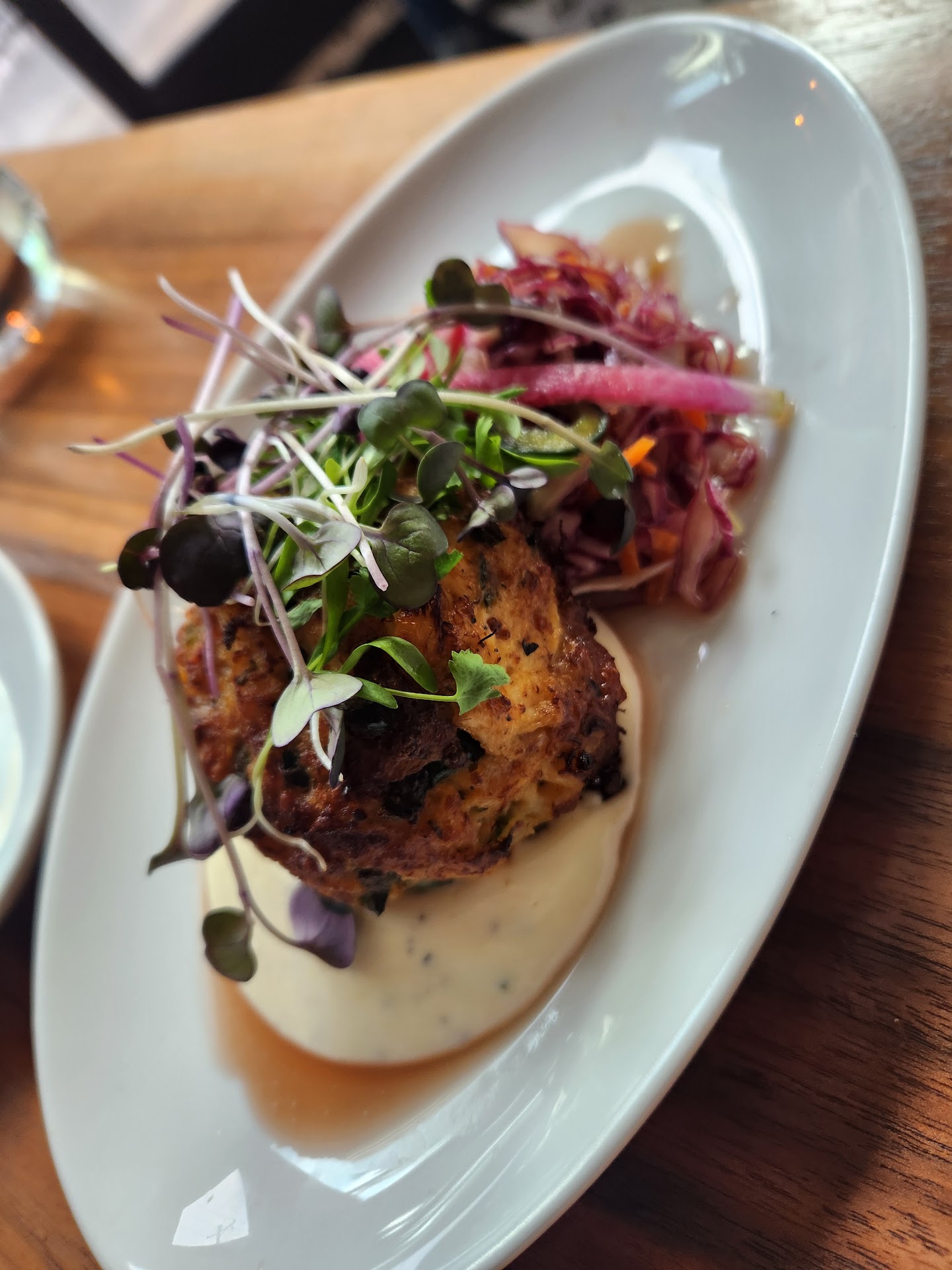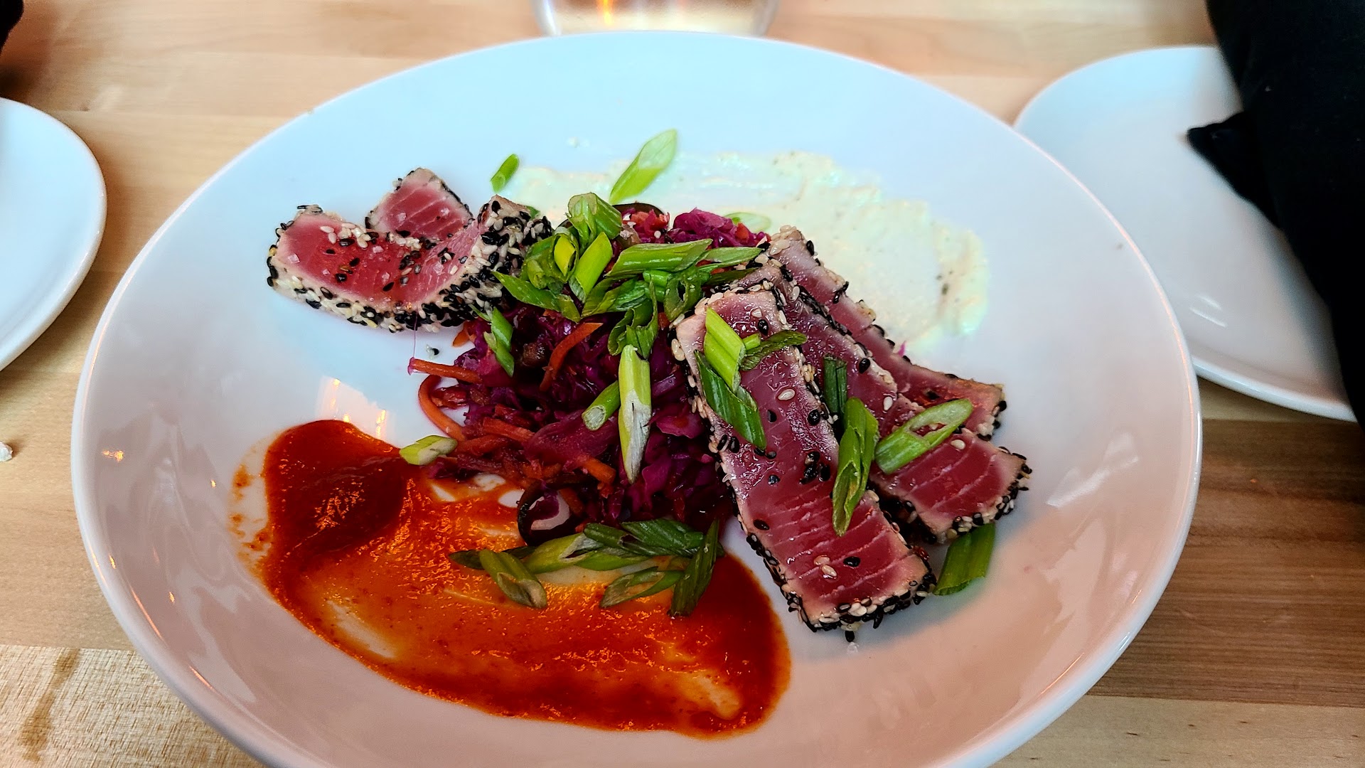 Read moreI am beyond baffled that this place has anything less than 5 stars because it is exquisite in every single way! Starting with the location, it's a great spot because it's not right in the heart of downtown cincy so it's a little more quiet, less hectic, and down the street from East Walnut Hills which we really like as well! The parking lot behind it is large, therefore parking was smooth (that does matter, lol). The asthetic of the outside and inside is very pretty, and the inside layout is open while being cozy! They have a large dining room, high top bar seating, bar seating, and a nice and spacious outside patio! We sat at the hightops in the bar area, and we loved it! It was busy, but it felt good. Had good energy and didn't seem crowded or congested! The service was friendly, attentive, and on the ball. We got the BEEF WELLINGTON POPOVERS and the SEARED AHI TUNA for our appetizers, the KOREAN BBQ PORK BELLY and the LUMP CRAB CAKE for our entrées, and the ROASTED BRUSSEL SPROUTS for our side. I can honestly say everything was unique, flavorful, and absolutely delicious! We were so pleased with our whole experience!...
