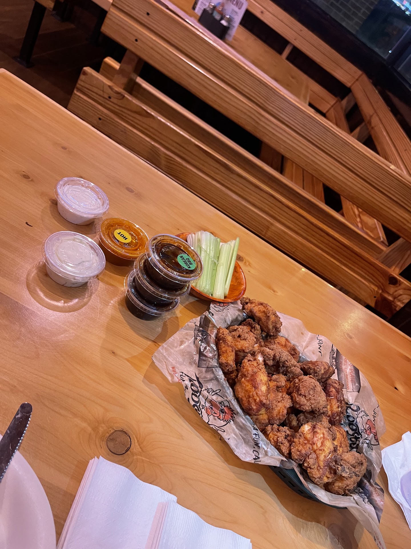 Even though Roosters brands itself as a fast casual restaurant, this location is far from that. Wait times keep getting longer and longer. On my most recent visit, I ordered just 5 wings at 10:00 PM with an empty dining room and still waited 30 minutes for my food. At that point, I didnāt even have the energy to complain. I just wanted to leave.