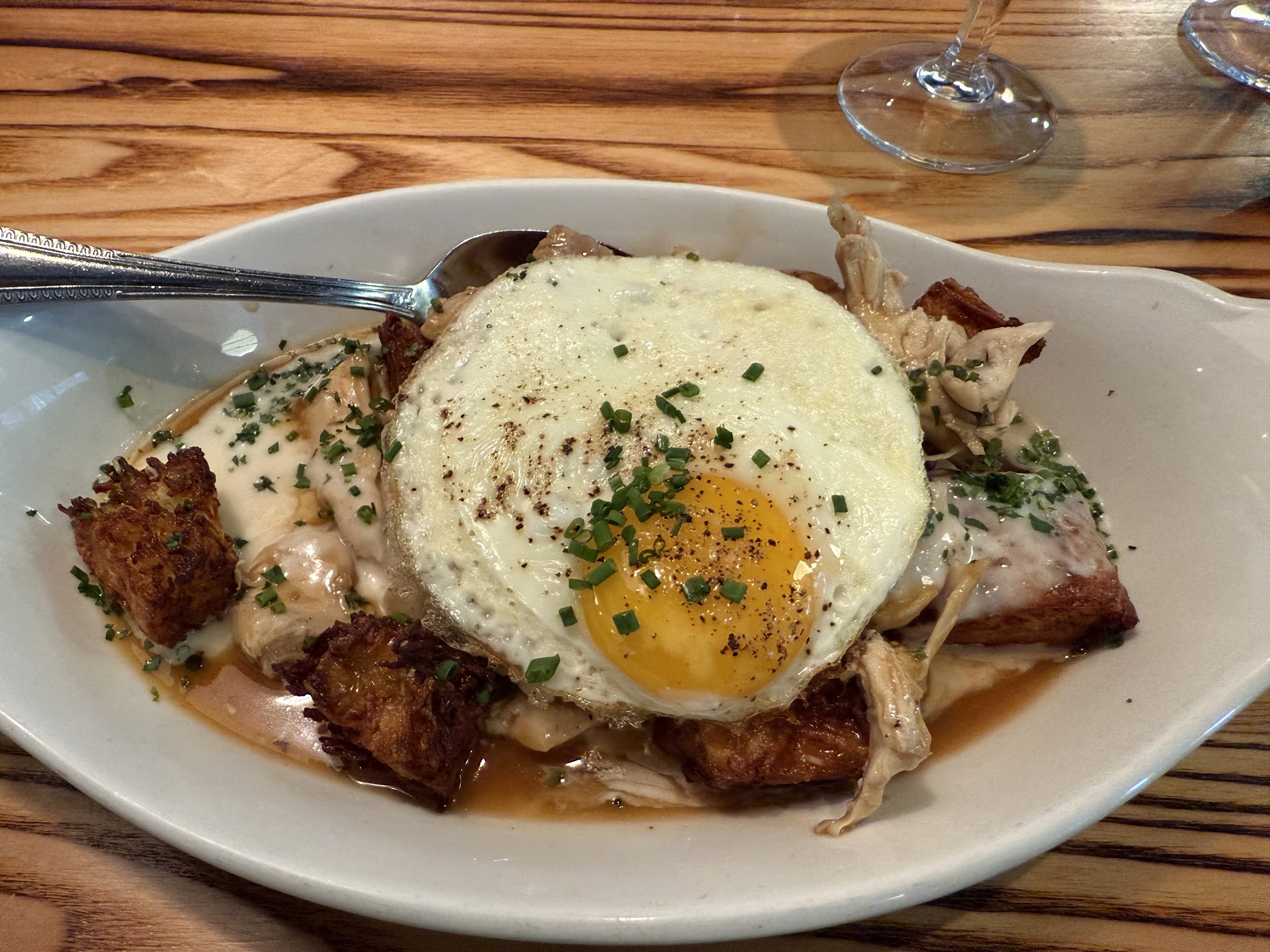 Read moreThis is the first restaurant that we have physically eaten inside of since the Pandemic started! And Wow!! It was the right choice. The restaurant decor and atmosphere was so cool. Our server was MacKenzie and she was the BEST server we’ve ever had. Knowledgeable about the menu and how things were prepared. Very knowledgeable about their signature cocktails and mock tails (I don’t drink). From the time we sat down we were treated like we were the most important people there! The manager Jake, came to our table several times to check on us, sent us over a round of shots (yummy)! Ya’ll, they make their own Fireball!! Our group thought they were delish! The Head Chef came out and introduced himself. Overall, the best experience EVER! And let’s talk about the food! OMG we started with the deviled eggs which were out of this world and a spicy shrimp appetizer. Yummy! The three of us ordered the Dirty French burger and it tasted like french onion soup in a burger. Lord it was tasty! Our other friend ordered breakfast. They serve it all day and night long. It tried one of her hash brown cubes! Deliciously crunchy outside and a creamy explosion of potato inside. I could have eaten a whole plate of those all by myself. And now...dessert. I need a moment of silence...the chocolate pudding with whipped cream and chopped hazelnuts- yum- and then their cake with sliced strawberries!! To die for!! This was the meal we’ve been dreaming about since the shutdown. And it was worth it very month of waiting!! Truly spectacular from beginning to end. And did I mention our fabulous server, MacKenzie! Of course I did, but she is worth mentioning twice! Along with Allison and everyone who came to our table to make sure everything was great. Not invasive! Just made us feel pampered and valued. Can’t wait...