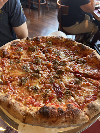 It would be difficult to overstate the quality and expert preparation of these pizzas. Our family is always searching for great pizza parlors and, for my money, this place tops the list. The night we went the owner was baking the pizzas. You can absolutely tell it's a passion for him and his staff. We made a point to compliment him on the way out and wish the business success. He took a few minutes and kindly chatted with us. Our waiter answered all of our questions about how they make the dough, find the ingredients, and what they make in-house. He even knew the moisture percentage of the dough! When your waiter knows these kinds of details it is clear the restaurant is taking their pizza seriously. Having said that, there is nothing snobby or snooty about the place. It is welcoming and has a positive, old school vibe. The pizza is New Haven styled (just not charcoal cooked). The crust is crisp and chewy, the sauce has just a hint of sweetness, and the toppings are absolutely fresh. They make their sausage in-house and it is the best I have had on a pizza. Go check it out for yourself. The price is high end for pizza and you definitely get what you pay for...