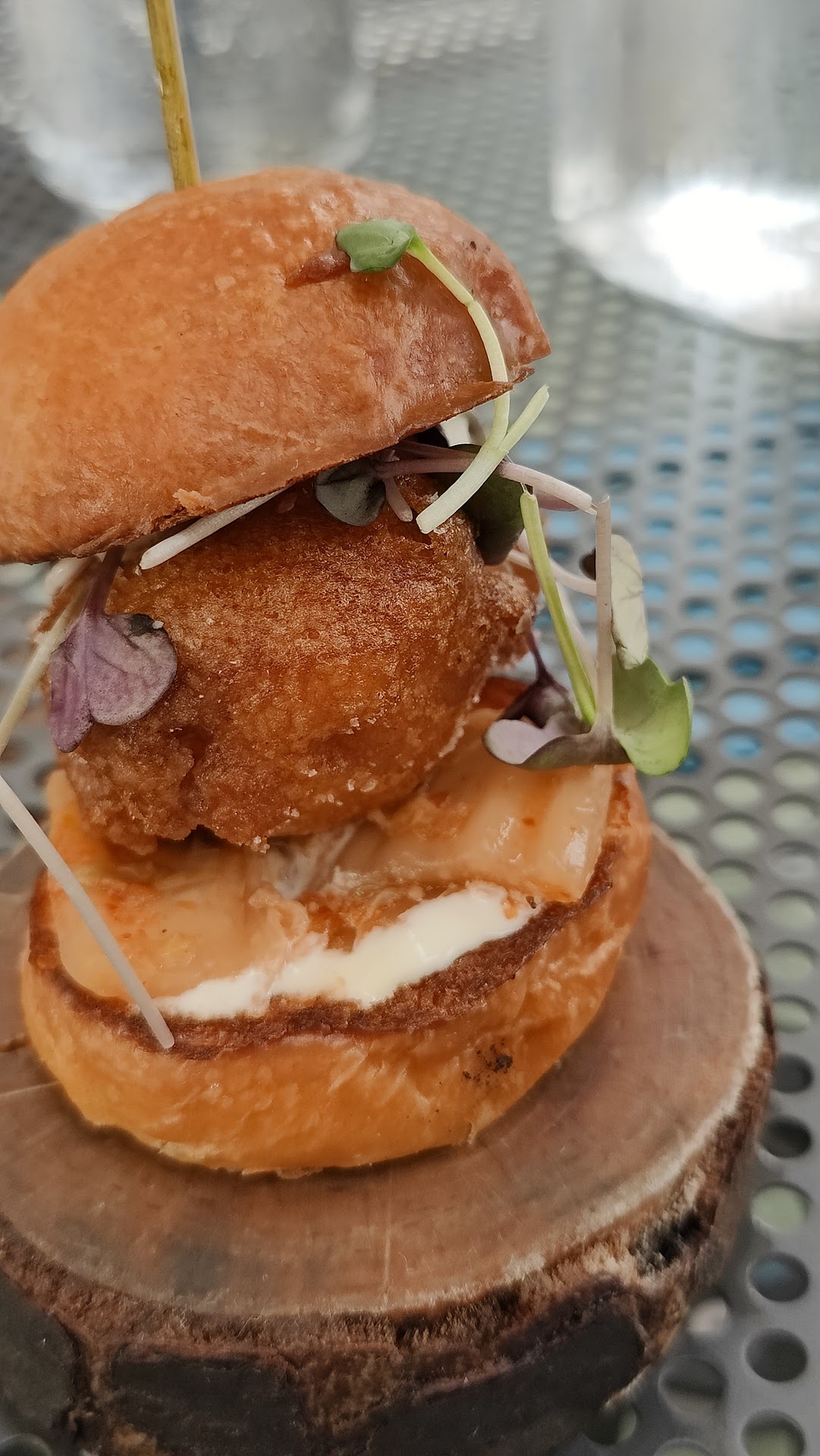 Salazar, by Chef Jose Salazar, was the best experience and surprise we had on a 24h connection in Cincinnati. I would say it's a special diamond in the city and a must go, if you have the opportunity. A reservation is recommended. We didn't get a seat inside (our fault), so we had our dinner on the tables outside, which was also pretty good. The service is exceptional. They know a lot about the ingredients and food they are serving, they help you choosing drinks, make sure you don't run out of water, and always with a smile and great mood. We chose Salazar because it is presented as a farm-inspired, local and regional sourced restaurant, that reflects a truly Cincinnati experience. I believe the menu changes over time and season, as I didn't find everything that was on the photos. Anyway, we did the right coices. 🦪 oyster sandwich - the most surprising and tasty dish! Very well balanced with a fried oyster and spicy kimchi, and the flavours of the radish sprouts and garlic mayo. It was an appetizer, but this could easily turn into my main dish. 🐟 Grilled Hamachi Collar - so well cooked, soft, tasty, and with a perfect ginger-tumeric sauce. Sided with some crispy black rice crackers. 🍔 The double smashburguer - from local grass fed cows, which shows how Salazar cares about what he puts in his restaurant. Asked for the extra egg. Didn't regret my choice. Perfect pickle (i would love them to be home made, but I am no sure), with aged cheddar and a potato bun, was for sure one of the top burguers I had. 🍗 Amish chicken paillard - it was not my dish, but I could try it. Was surprisingly soft inside, and crispy outside. 🍨 There was still room for a sweet treat. We were enchanted by the honey ice cream and the coffee ice cream. We had both, and although I was mostly curious about the first, it was the coffee one that won. It was creamy, strongly flavoured and delicious.