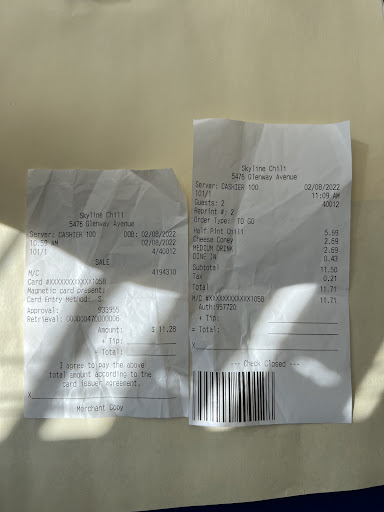 I have been going to this skyline for years and know I won’t be back even if it’s FREE. Couple mths ago as I was dashing and had to pick up an order there with 3 large drinks, it ripped soon as a picked it up due to it being super cheap. Asked the manager for another one he told me he couldn’t give me another one. I explained to him that I am a dasher and the first one just ripped. He told me I had to deal with it. I told him no he deal with it and I unassigned the order because I serve food with integrity and thats the same way a company such as this should. Ok that’s that. I wasn’t feeling good last night so I sent my daughter there to grab me an order of chili cheese fry’s extra juicy, extra onion. I’m on the phone with my daughter as she is ordering so I know she ordered my fries how I wanted them. However my fries had lil to zero chili and a BUNCH of cheese to hide it. I brought it back and asked the lady manager if they could be remade and I asked for extra juicy. . She tells me that they don’t do extra juicy so I said you do extra juicy coneys but don’t do extra juicy fries ? She said in a very nasty voice as if I was asking her for the chili recipe WE DON’T EVEN DO EXTRA JUICY CONEYS ! Thats considered extra chili !! I said I have been eating the same items from skyline since 1989 and have always got them extra juicy with no problem. I was even at THAT SAME location 2 days before this and got a extra juicy coney with no problem and no additional charge. She said I can remake them but I can’t give u extra juicy unless u pay for extra chili. I said I don’t want extra chili I just want them extra juicy. She said I can remake them but if u want them extra juicy it’s gonna take away form the chili cause I’m only giving you 4oz. Remind you it wasn’t even 4oz on there to start with. The fries only had a spoon full of chili dropped in the middle. I said well ok can you just re make them. She does but I see her go and put some fries in the grease that had just been sitting there in a pan. Not even in any type of cooler. I then said can I just get a refund I have my receipt she said oh no I can’t give you a refund. I said you can’t make extra juicy chili fries but yet you never said that when the food was ordered and now you want to serve me some fires that’s been sitting out for I don’t know how long?!?! It’s not the profit that’s running these restaurants in the ground it’s the mangers !! Everyone that has management experience is not...