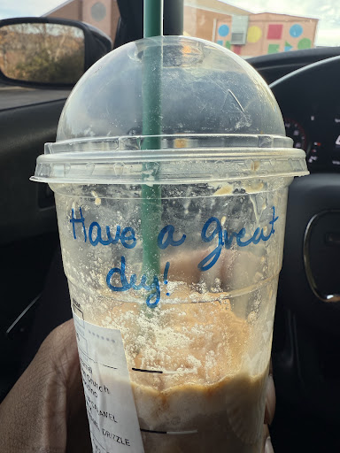 Read more⭐️⭐️⭐️⭐️⭐️ Pure genius from the Starbucks team! I was watching the barista write on my cup, thinking it was just my order — but when I picked it up, it said “Have a great day.” That little surprise instantly turned my morning around. It’s small gestures like that that show genuine care and creativity.