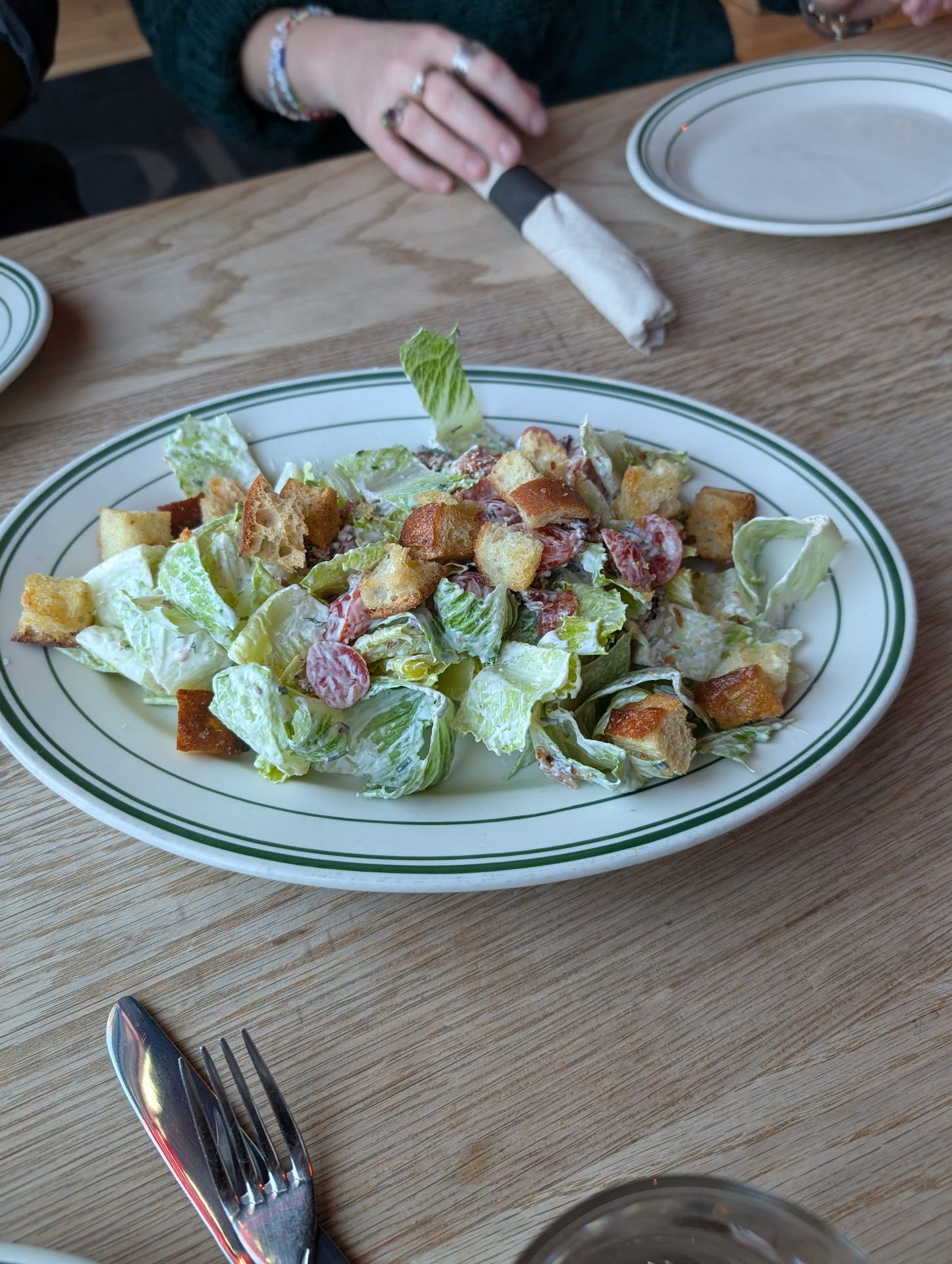 Read moreI order here a couple times a month, but sadly I think tonight was the last time I'm going to order from here for a while. At first I really enjoyed the pizza and their breaded chicken caesar salad. Over the past two months, however, I feel that the quality of their product has taken a dive. Their caesar dressing used to be really delicious, but the last several times we have gotten it, it has been watery and just plain disgusting...tastes tike salty, anchovy water. I don't know if they have begun cutting costs or what, but y'all need to go back to the original recipe. Also, they changed the breading on their chicken, which used to be amazing. Now it arrives soggy and the breading doesn't even stick to the chicken...sadness. It's completely different. Again, why mess with a good thing. Finally, their pizza is pretty pricey and you would think that you would get a decent amount of toppings for the price. We always order a cheese pizza with jalapeños (literally don't think you could find a cheaper topping) and our pizza arrived tonight with only 1-2 pieces of jalapeño per slice. It has been this way the last several times we have ordered and I'm just not willing to pay for extra jalapenos when the cost should cover a normal amount of toppings in the first place. I think it's time to find a new pizza place in Cincinnati. I really hate when a place opens and lures you in with their food in the beginning and then starts messing with their recipes to...