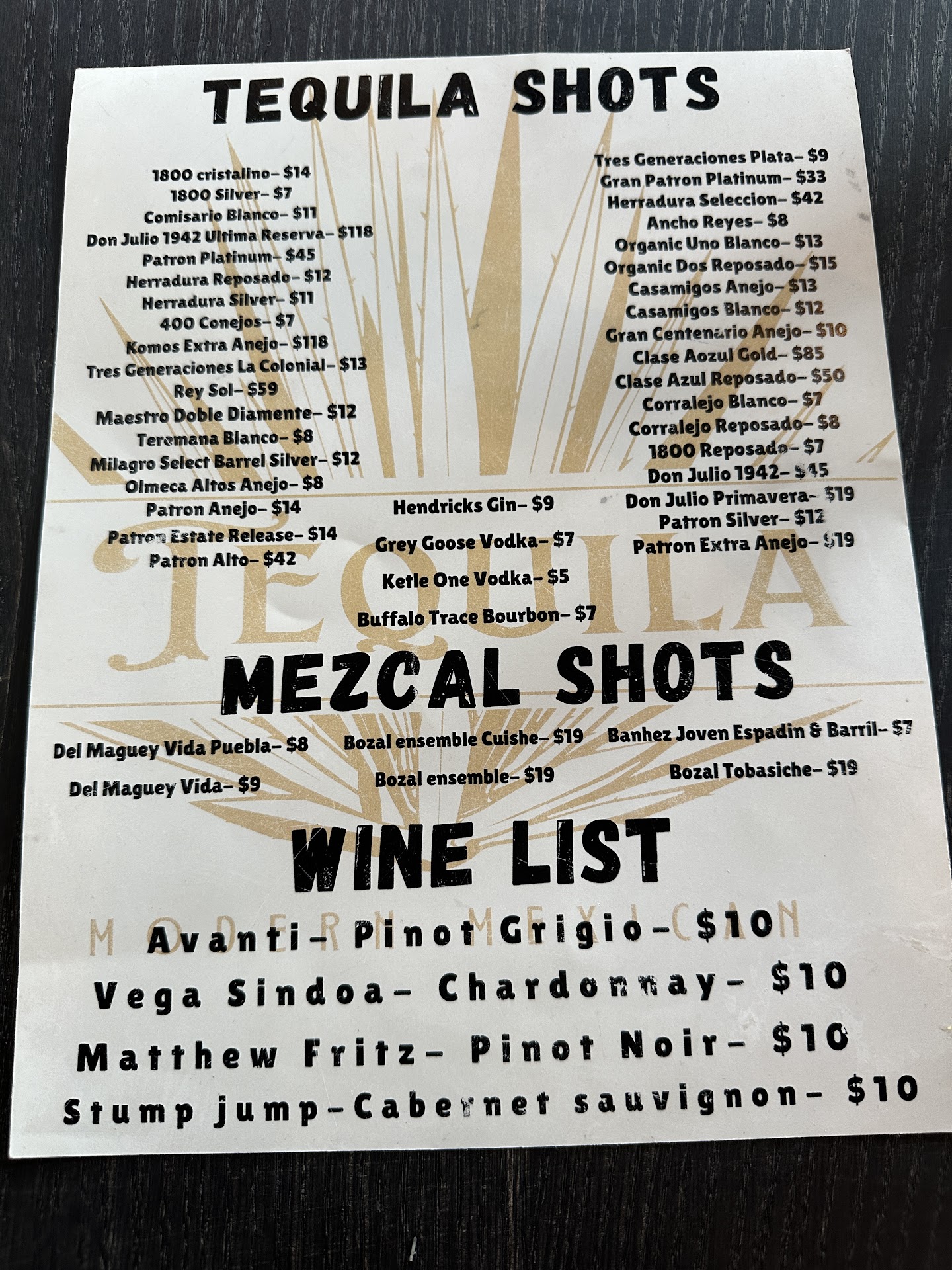 Read moreIt's the small things that make or break restaurants. Tequila Modern Mexican is new on the scene and they need to work on all aspects of their business. For example, how do they make you feel when you walk through the door. Everyone welcomed us with friendly greetings, from the wait staff to the bartenders. Check! They got that right. How quickly does the wait staff come to the table after you have been seated. Check! Our waitress brought water to our table immediately and returned with our drinks quickly. All good, so far.